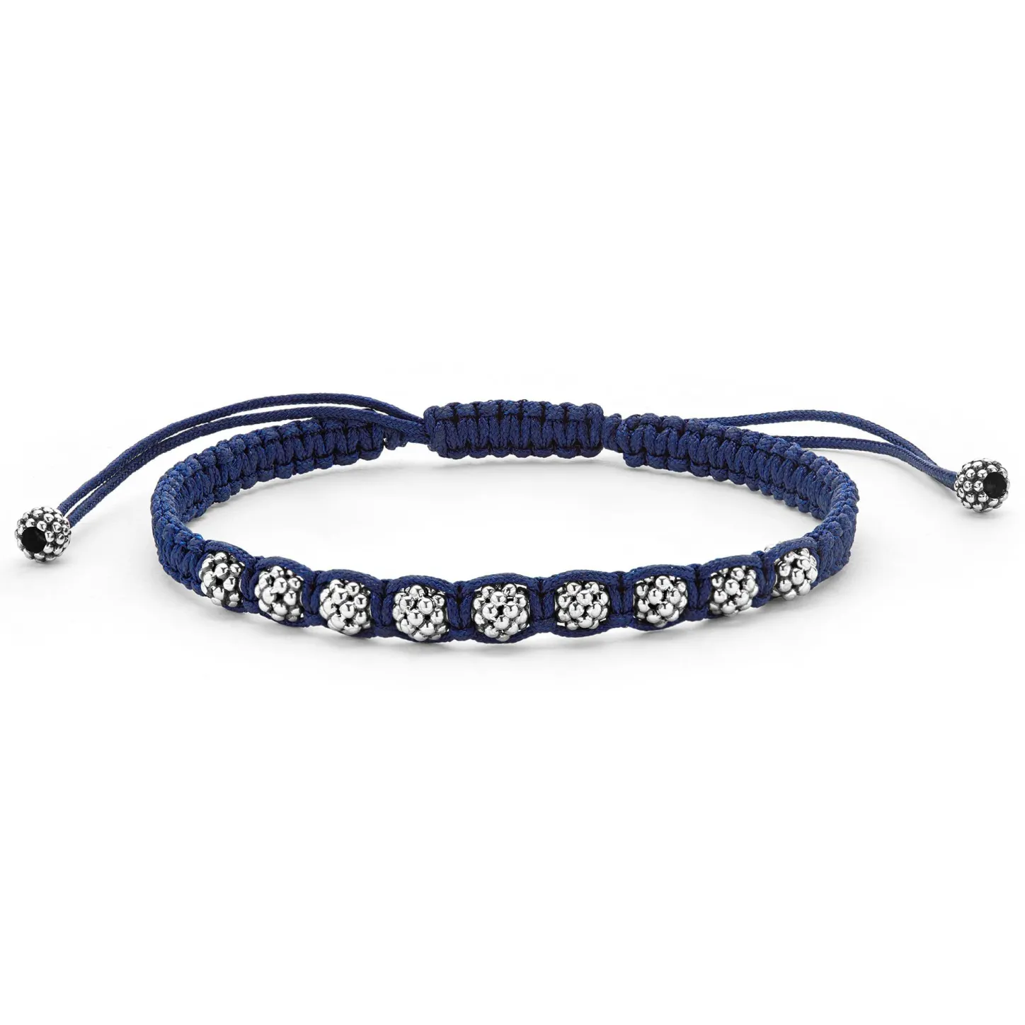 Navy Blue Braided Nylon With Sterling Silver Caviar Beading Forms This Versatile Macrame Bracelet.