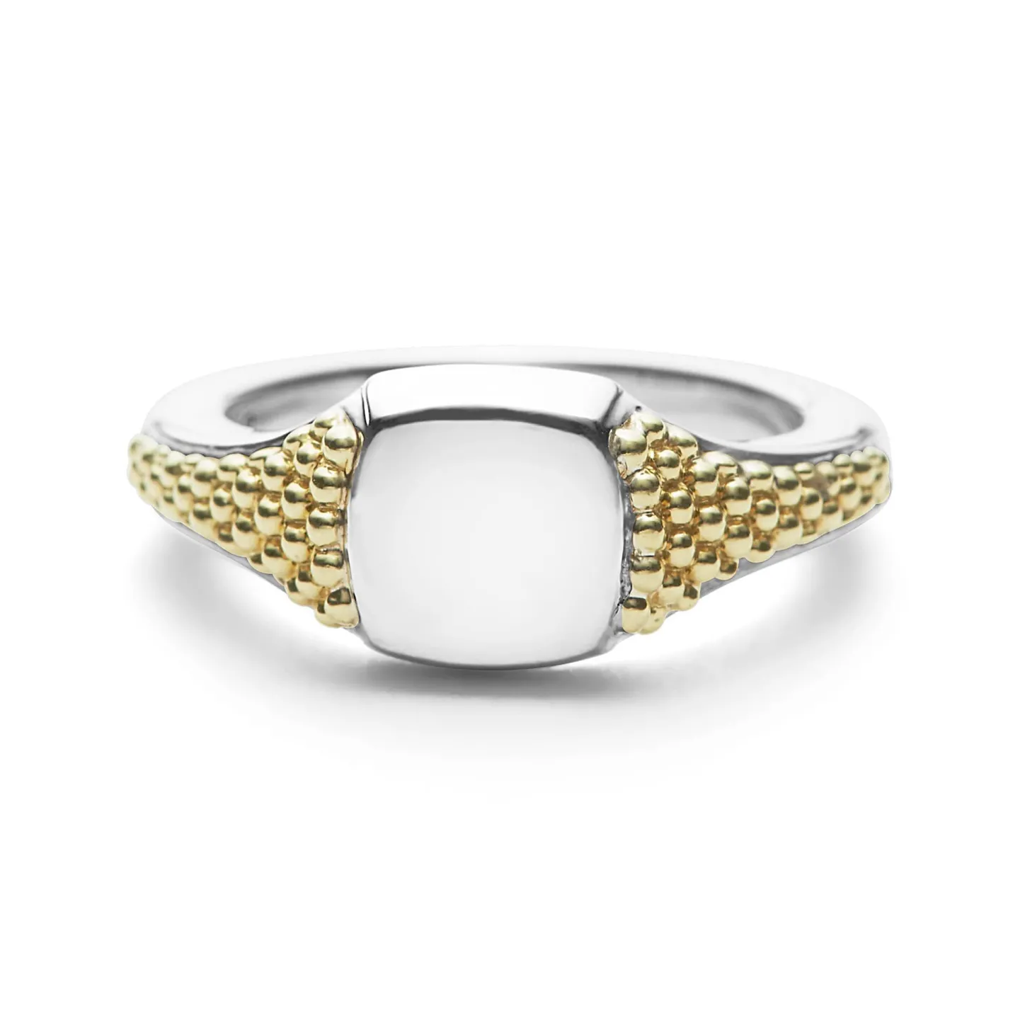 A Lagos Exclusive. Highly Polished Sterling Silver Signet Ring With 18K Gold Beading.