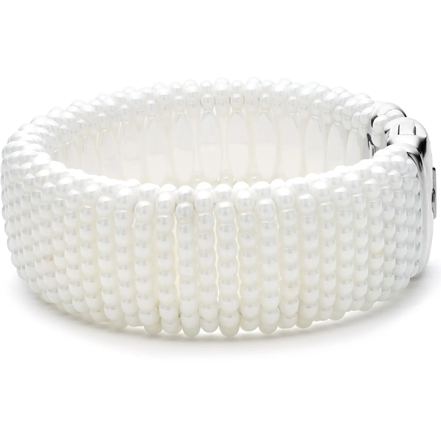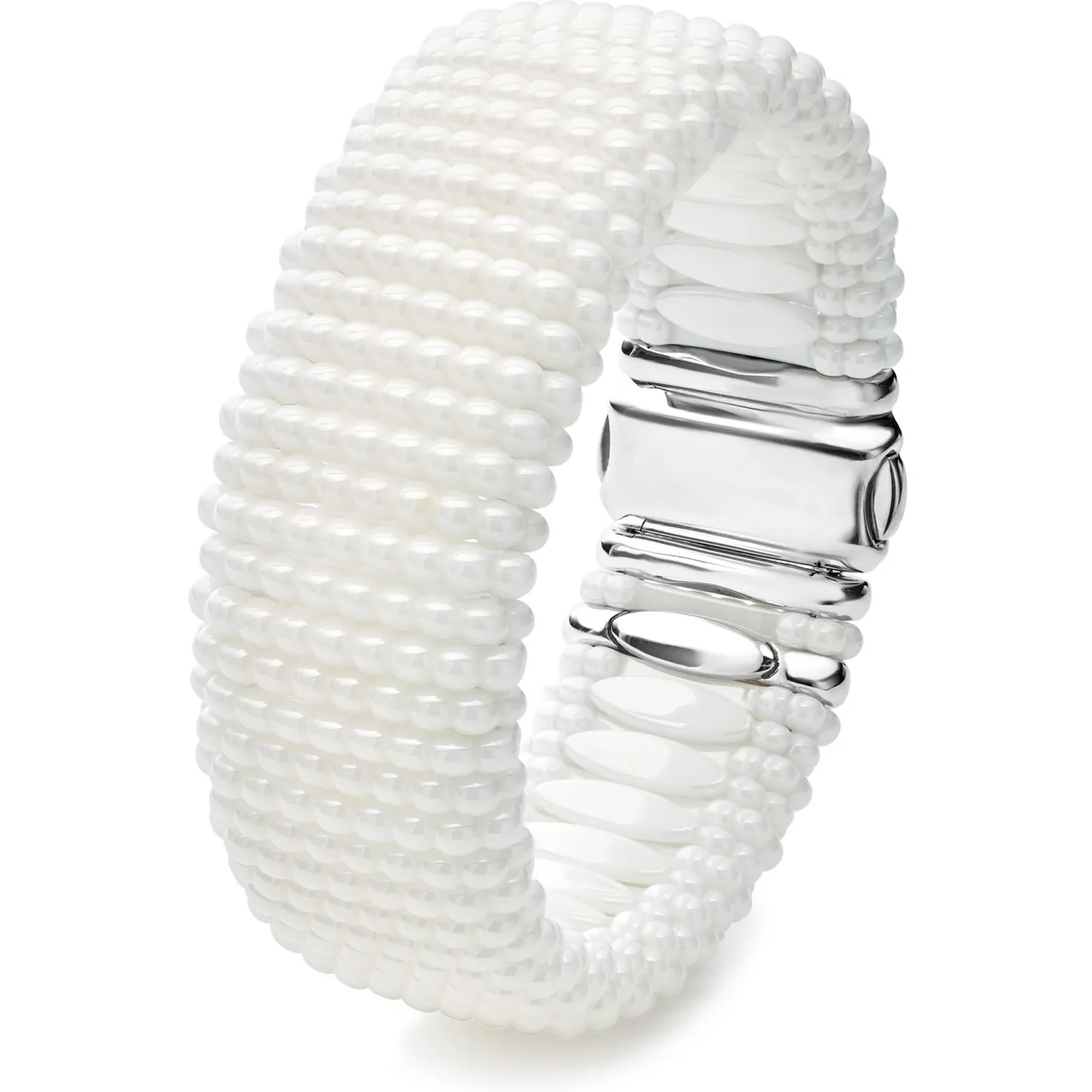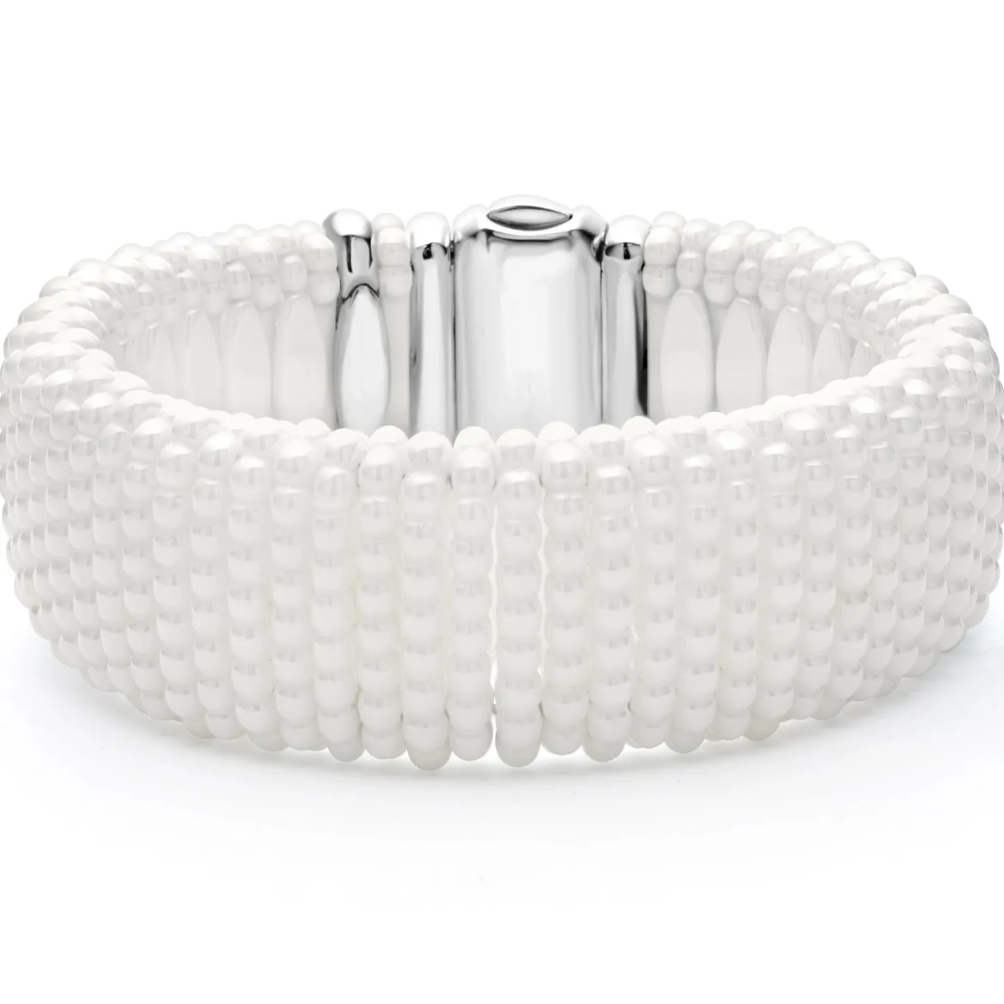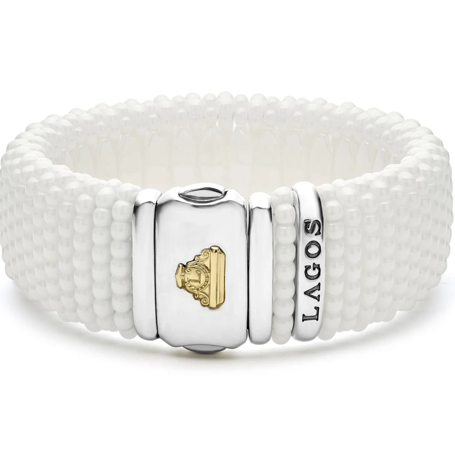 A Must-Have Lagos Design. A White Ceramic Caviar Bracelet That Is Finished With A Sterling Silver Double-Button Box Clasp With The Lagos Crest In 18K Gold.