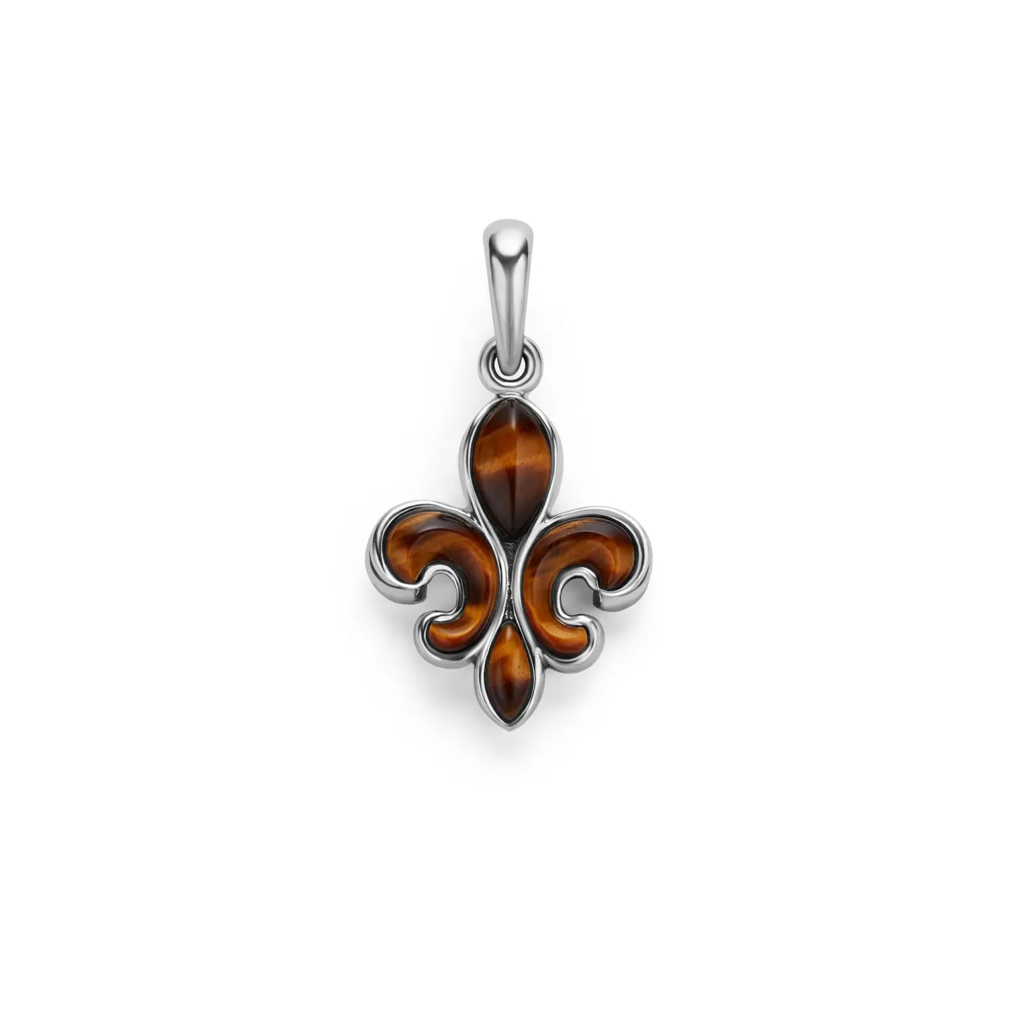 Tigereye And Sterling Silver Form This Fleur De Lis Amulet.
