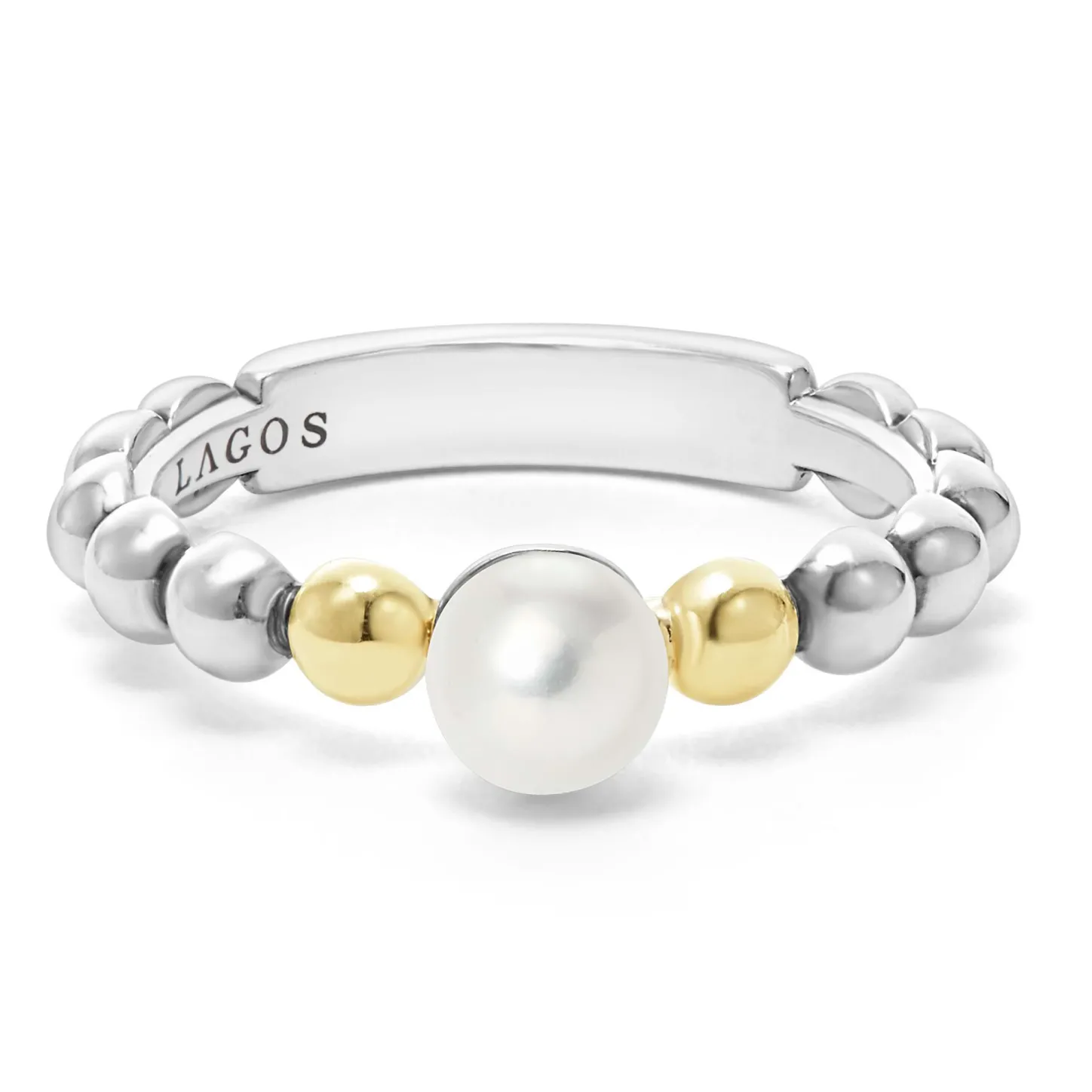 Cultured Freshwater Pearl Ring With Caviar Beading In 18K Gold And Sterling Silver.