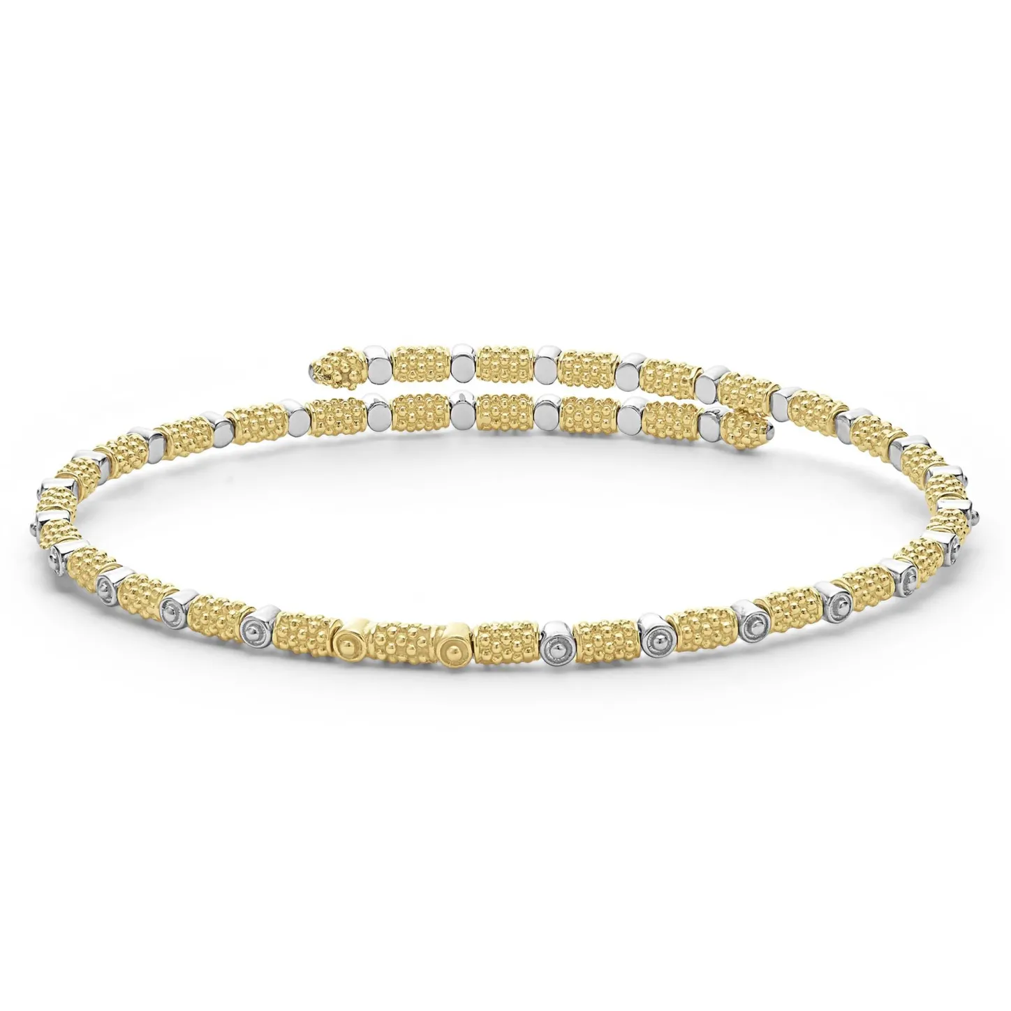 Diamonds Surrounded By 18K Gold Superfine Caviar Beading Form This Cuff Bracelet. Lagos Diamonds Are The Highest Quality Natural Stones.