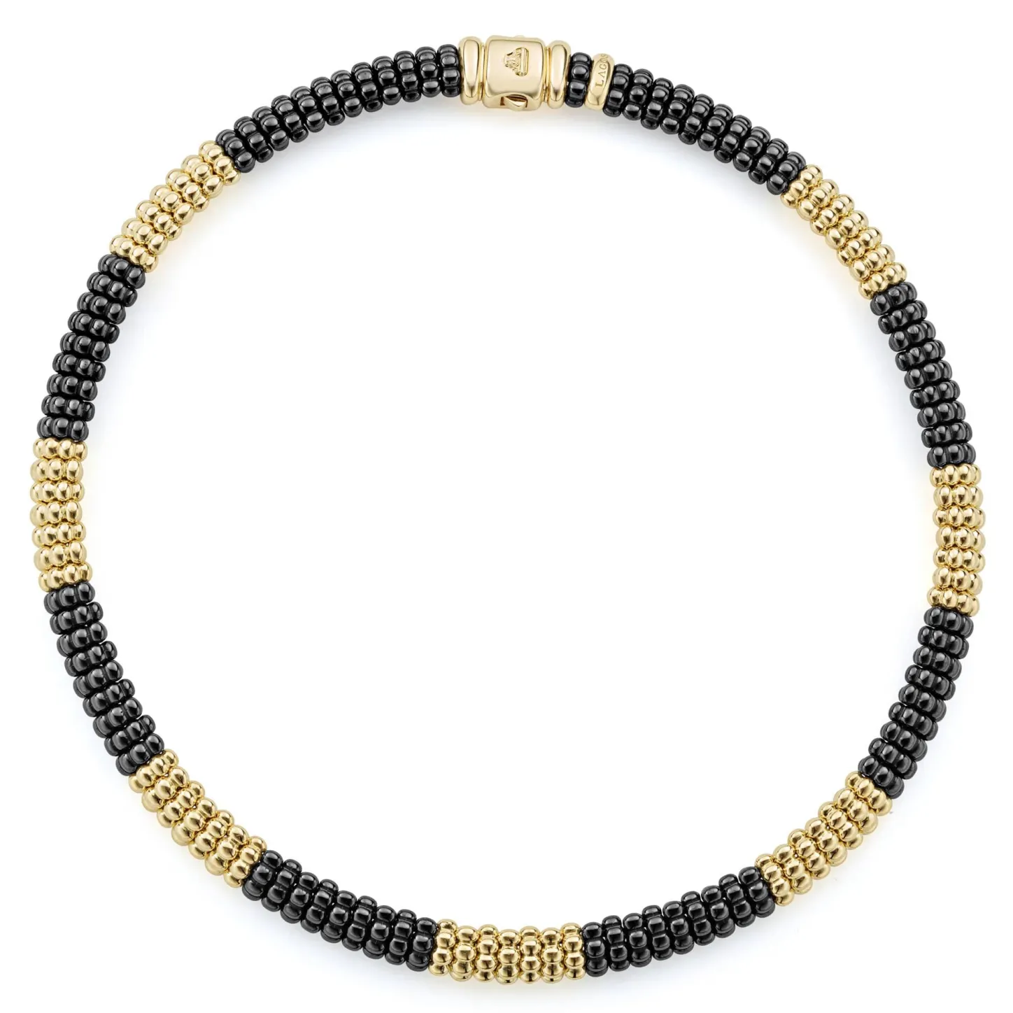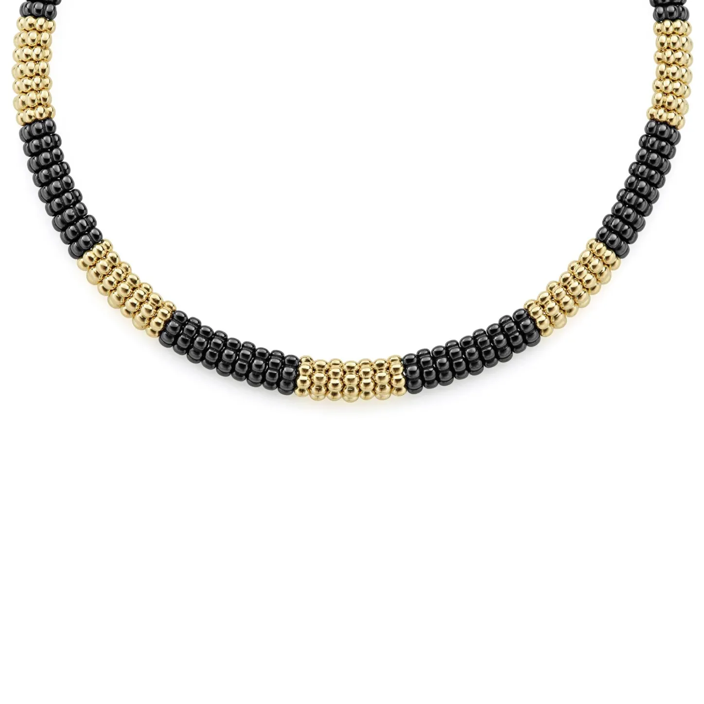 A Lagos Exclusive. Seven 18K Gold Stations Highlighted By Black Ceramic Caviar Beading On This Necklace Finished With An 18K Gold Box Clasp.