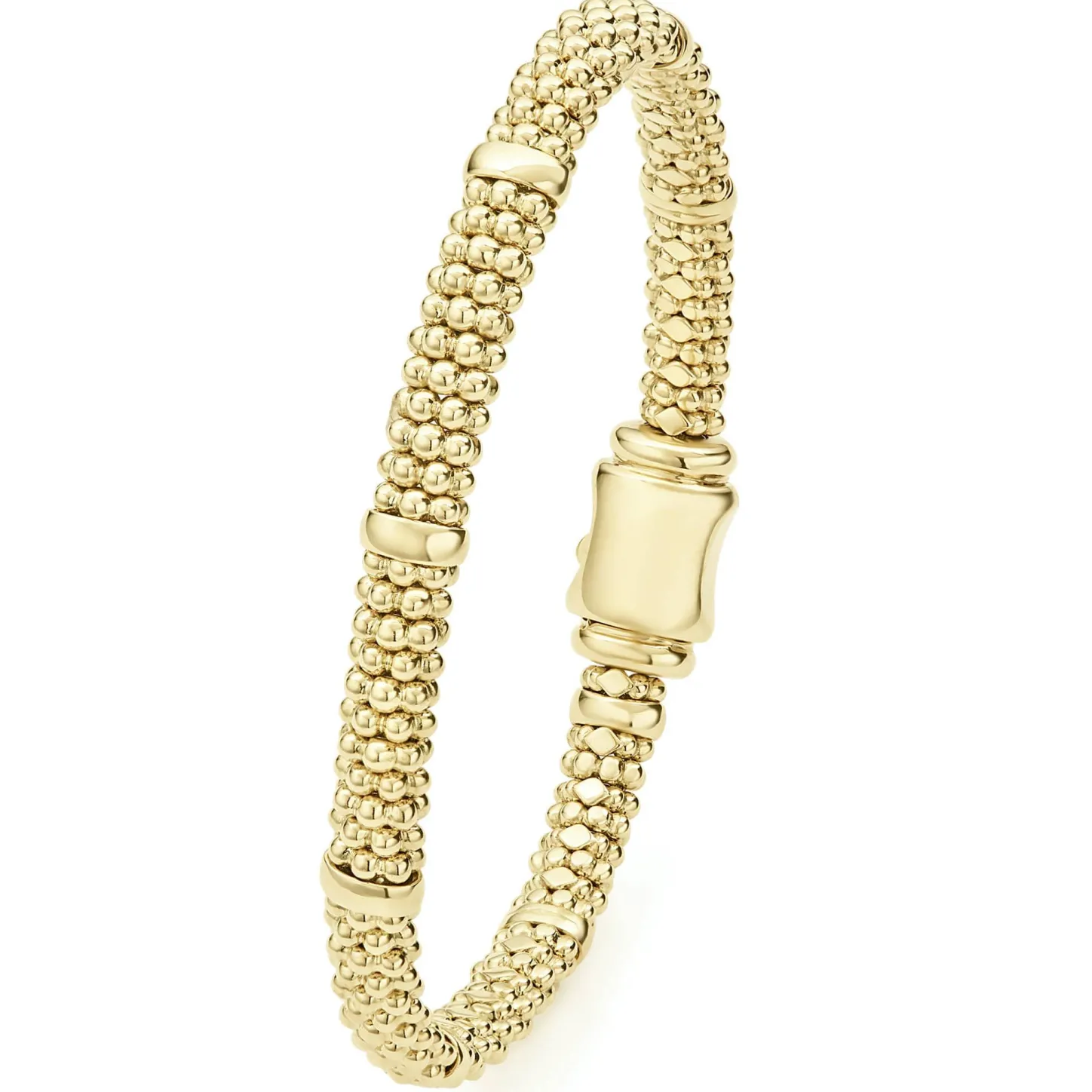 An 18K Gold Caviar Beaded Bracelet With Smooth Stations.