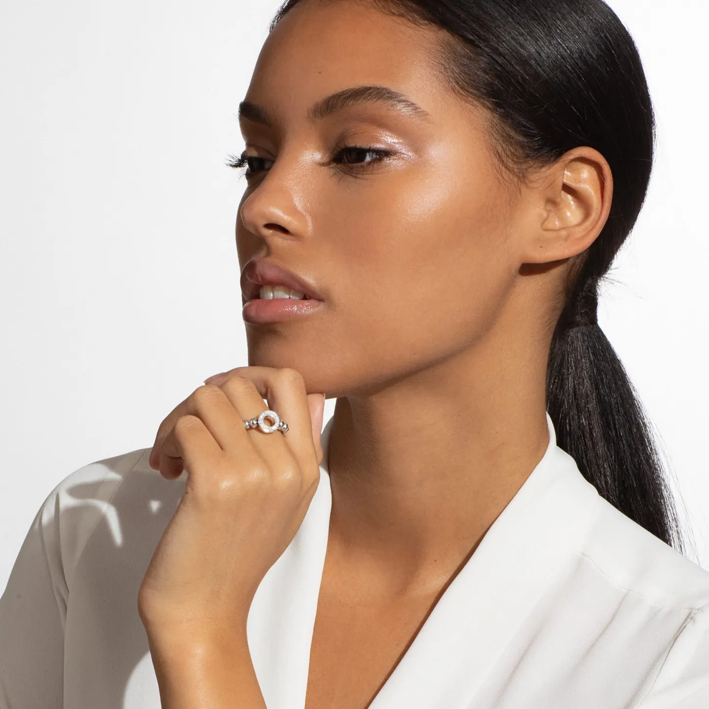 A Perfectly Formed Diamond Circle Detailing The Lagos Logo Sits On A Tapered Caviar Beaded Band. Lagos Diamonds Are The Highest Quality Natural Stones.