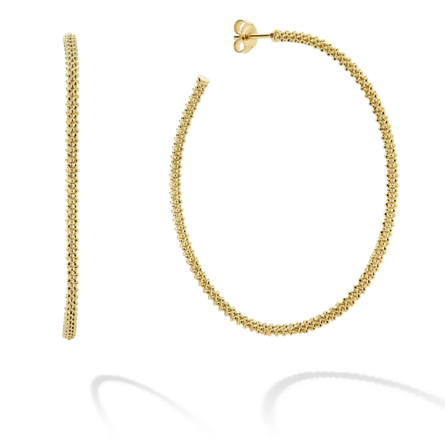 Bold Gold Hoop Earrings Formed Of 18K Gold Caviar Beading.