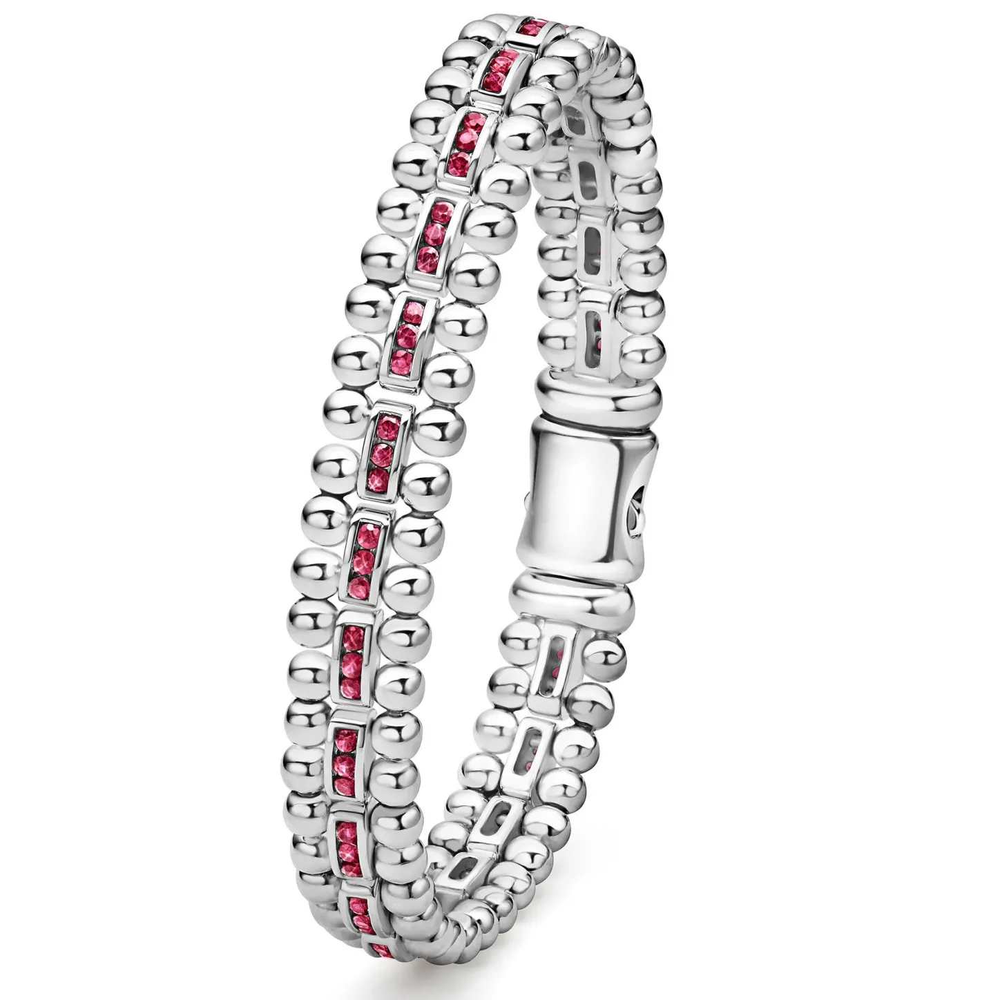 A Lagos Exclusive. Sterling Silver Caviar Link Bracelet With Precious Ruby Gemstone Detailing.