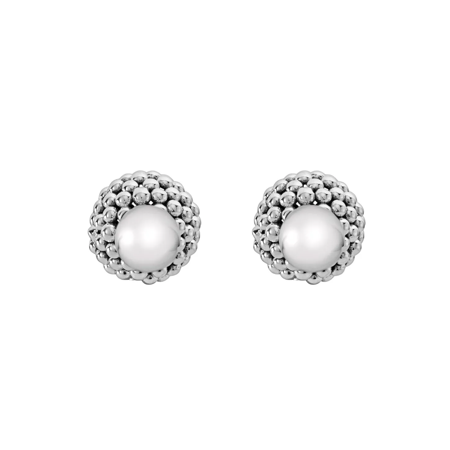 A Lagos Exclusive. Polished Sterling Silver Front Studs Pair With Sterling Silver Caviar Beaded Backs On These Chic Front-Back Earrings.