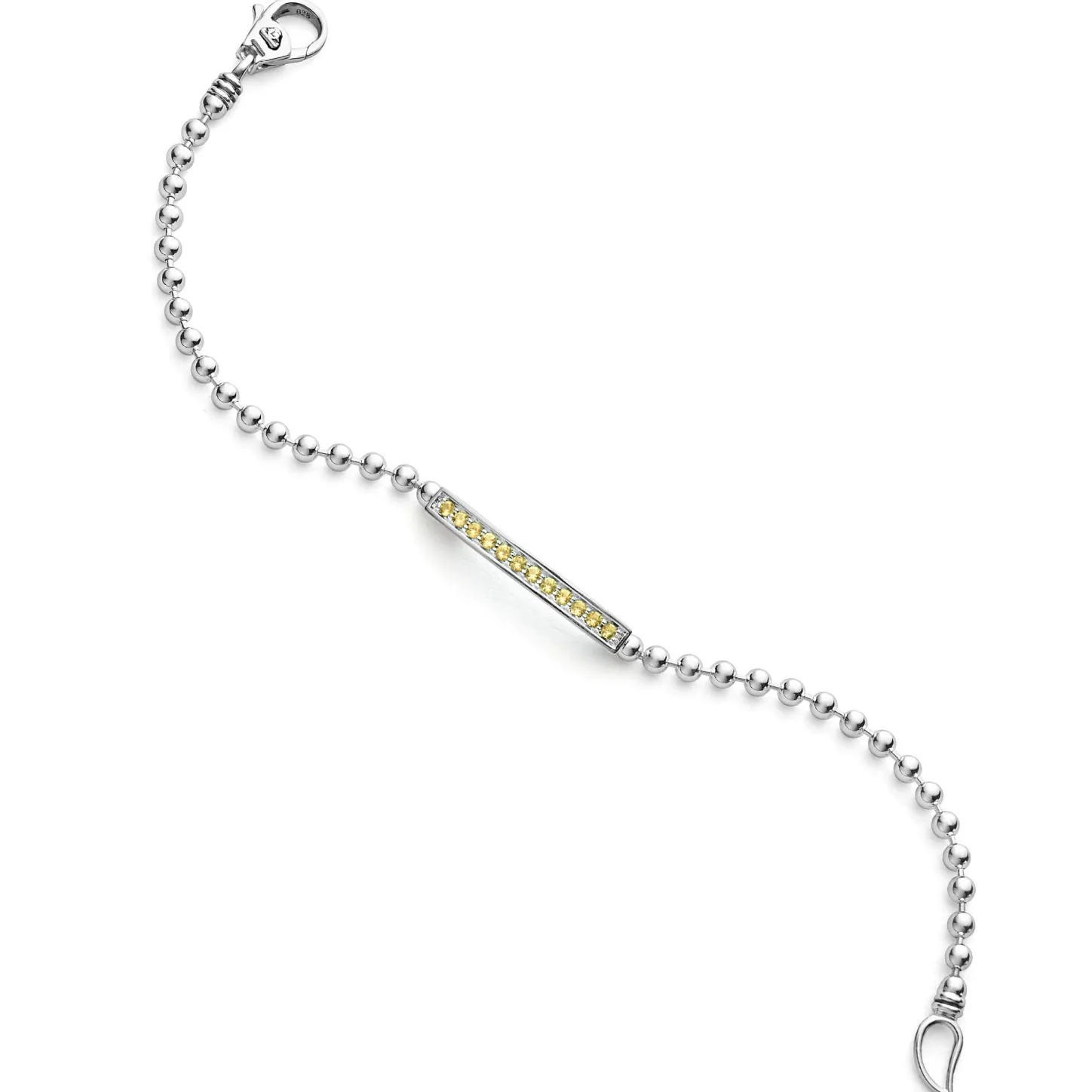 A Linear Yellow Sapphire Gemstone Station Set By Sterling Silver Caviar Beading Forms This Bracelet.