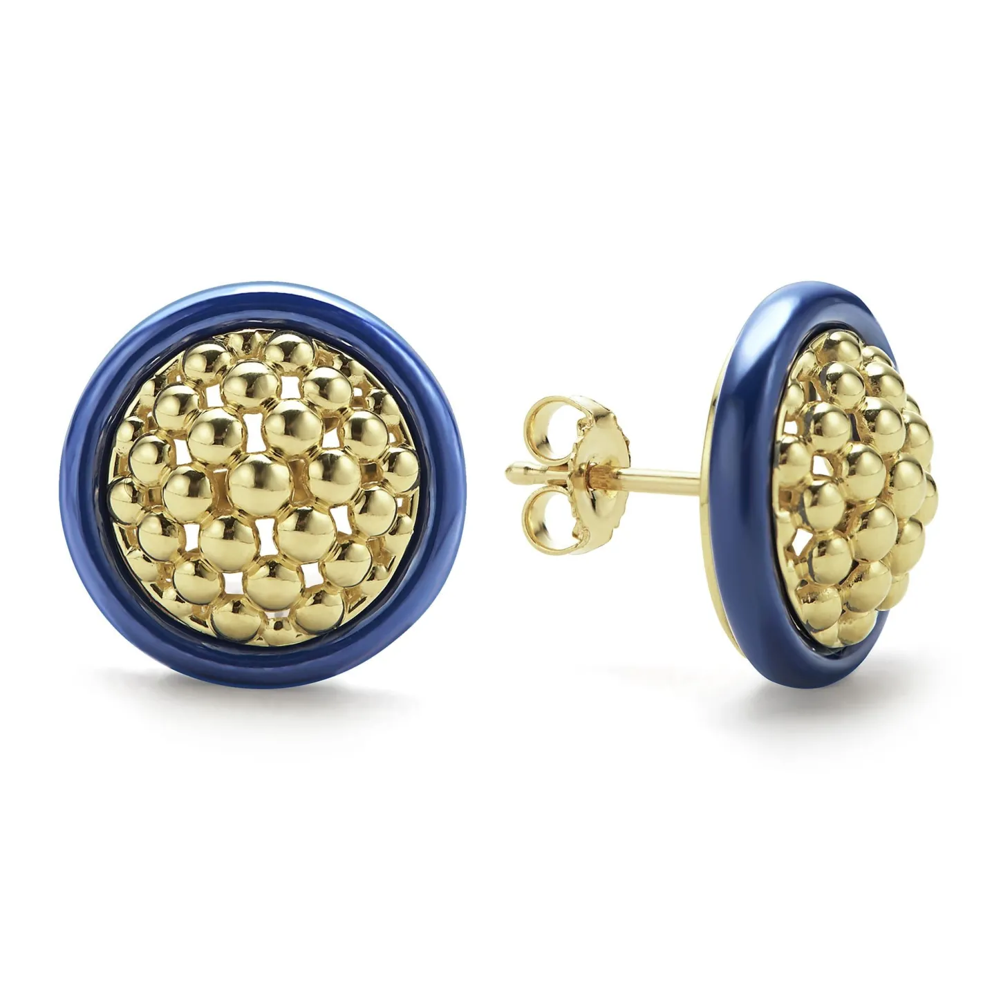 18K Gold Caviar Beading Surround By Ultramarine Ceramic Detailing Form These Stud Earrings.