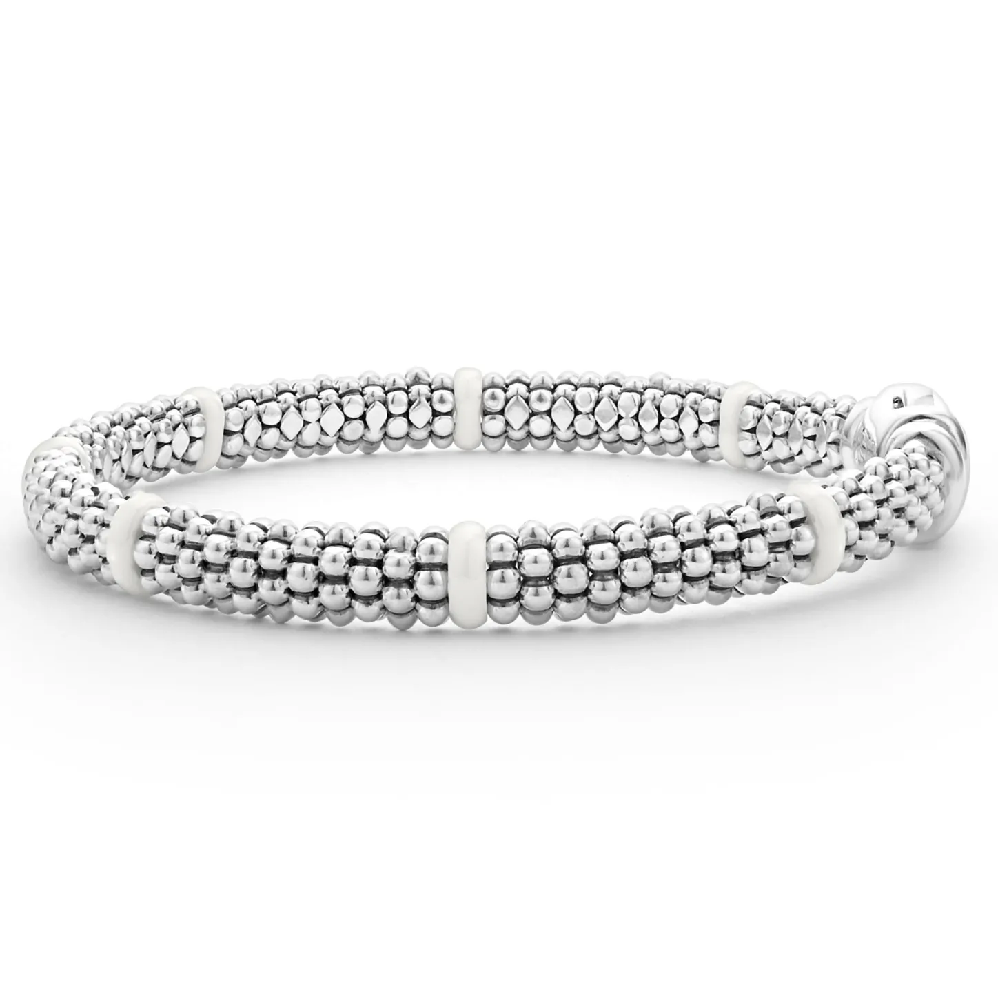 Seven Smooth White Ceramic Stations Highlight Sterling Silver Caviar Beading On This Signature Bracelet.