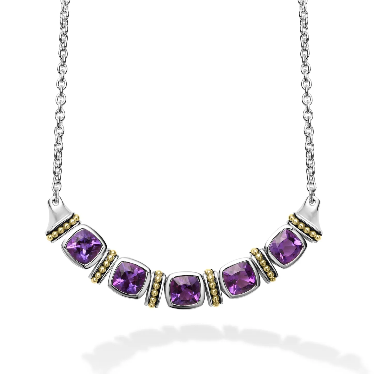 A Lagos Exclusive. Five Amethyst Gemstones Accent This Necklace Surrounded By Sterling Silver And 18K Gold Caviar Beading.