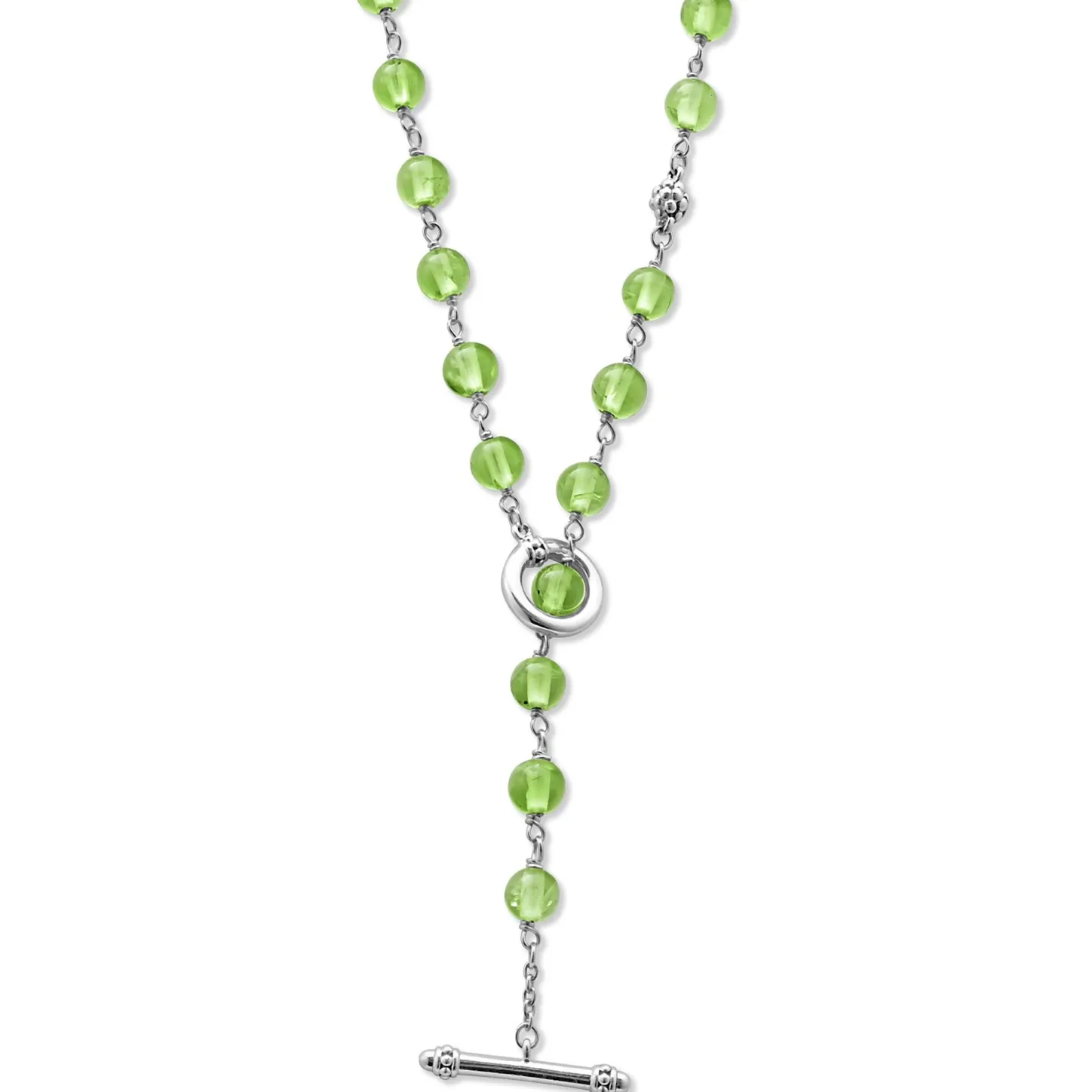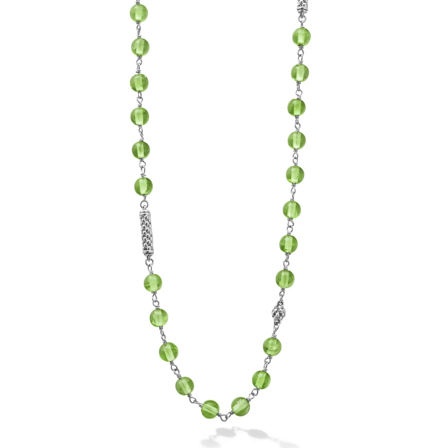 Peridot And Sterling Silver Caviar Beaded Necklace Finished With Signature Lobster Clasp.