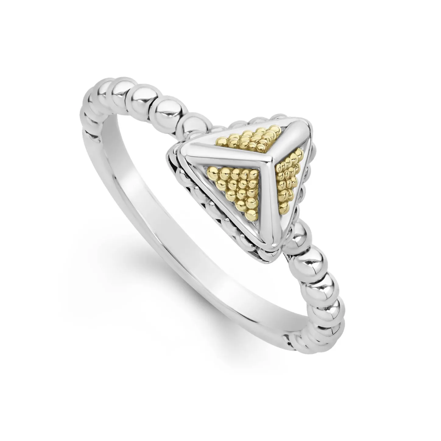 18K Gold Caviar Beading Forms A Pyramid Ring With Sterling Silver Accents.