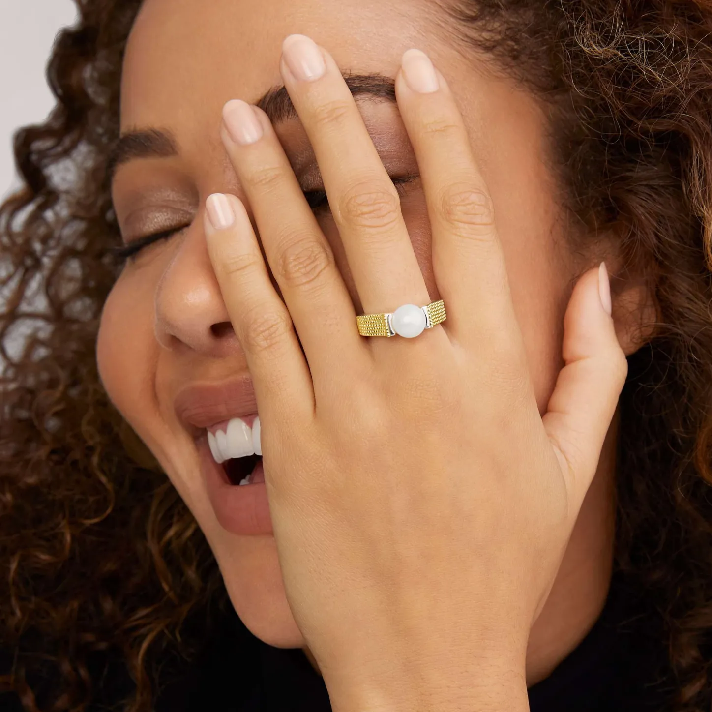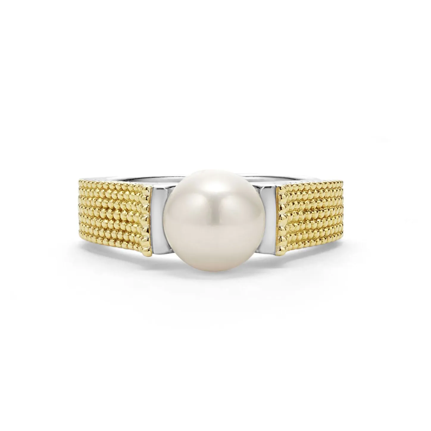 18K Gold Caviar Beading And Sterling Silver Form This Cultured Freshwater Pearl Ring.