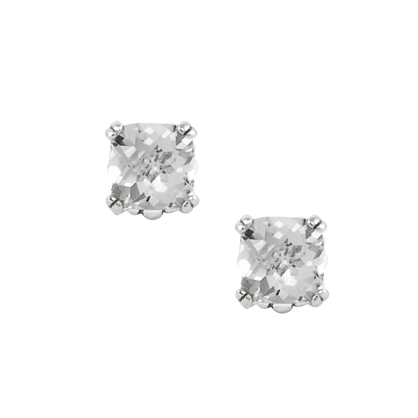 White Topaz Gemstones Form These Prong-Set, Cushion-Shape Stud Earrings With Harlequin Facets.