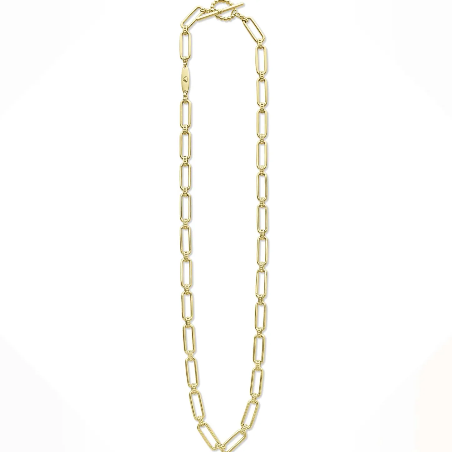 18K Gold Oval Flutes Form This Link Necklace Finished With A Toggle Clasp.