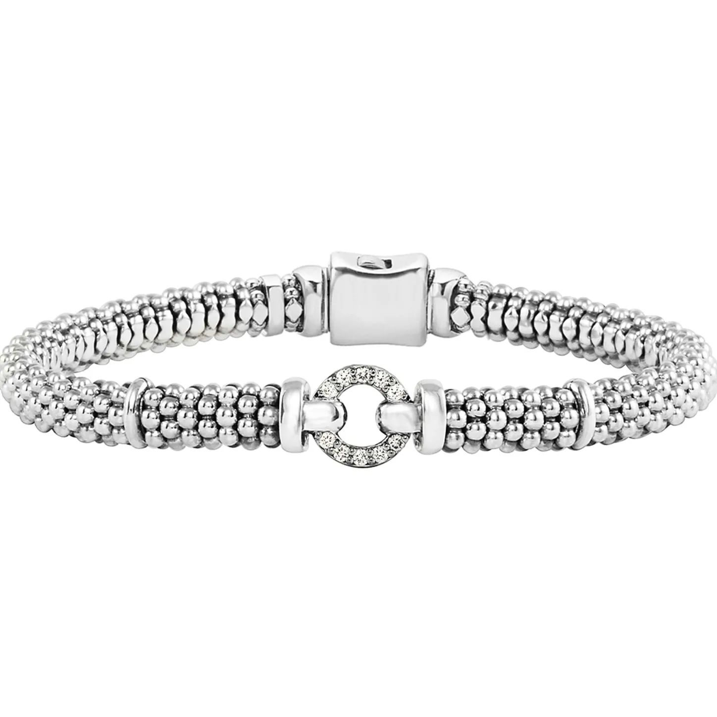 - Diamond In A Circle Motif With Sterling Silver Caviar Beading Forms This Bracelet. Set Includes Size Medium.