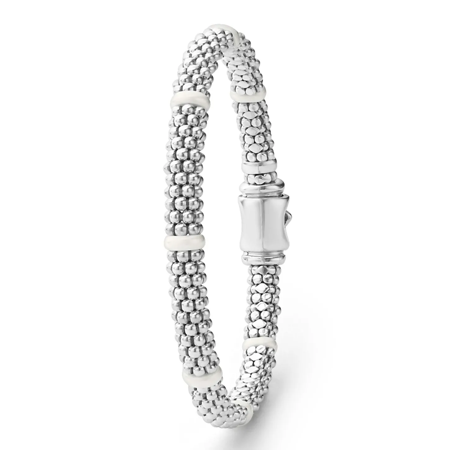 Seven Smooth White Ceramic Stations Highlight Sterling Silver Caviar Beading On This Signature Bracelet.