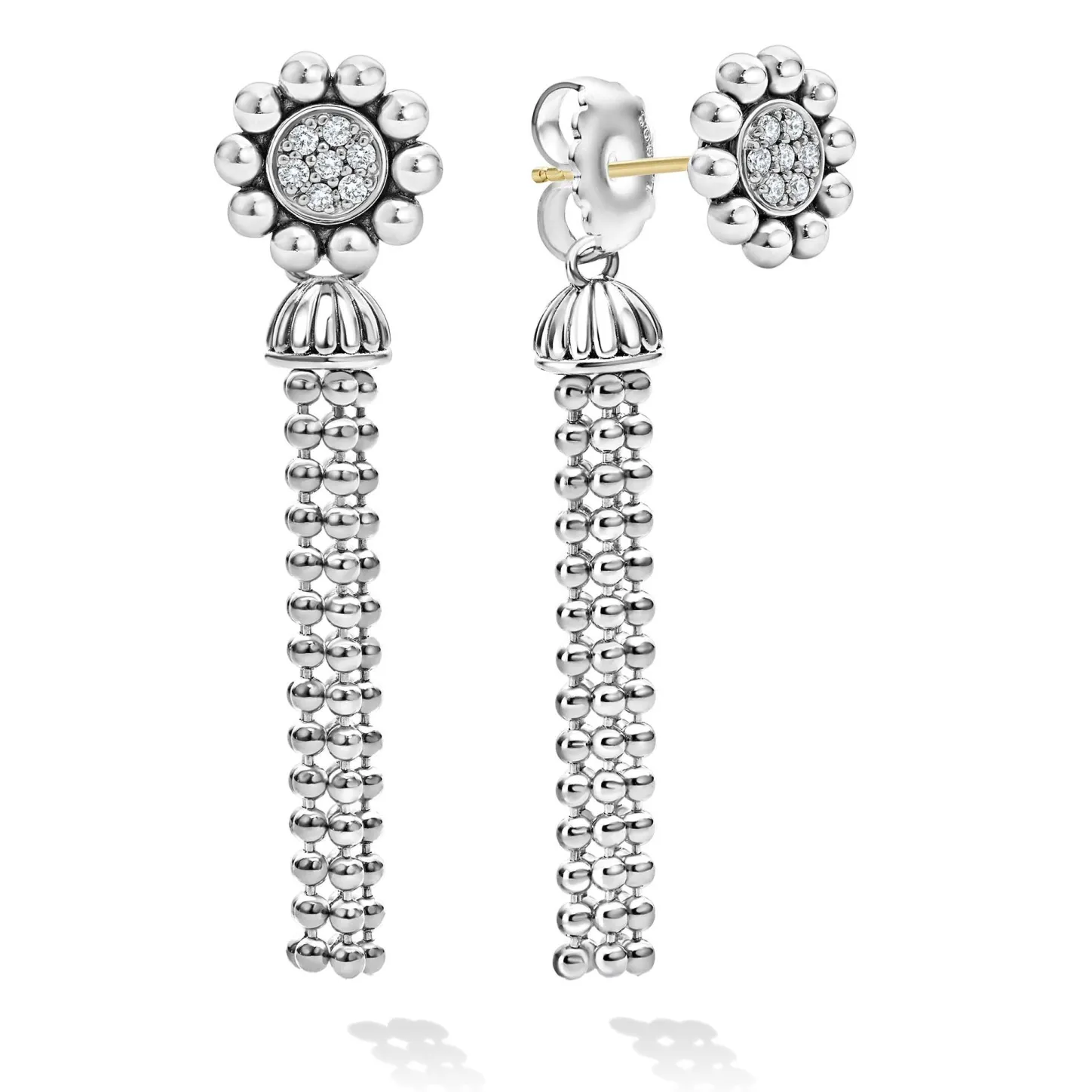 A Lagos Exclusive. Sterling Silver And Caviar Beading Form These Dramatic Drop Earring Backs.