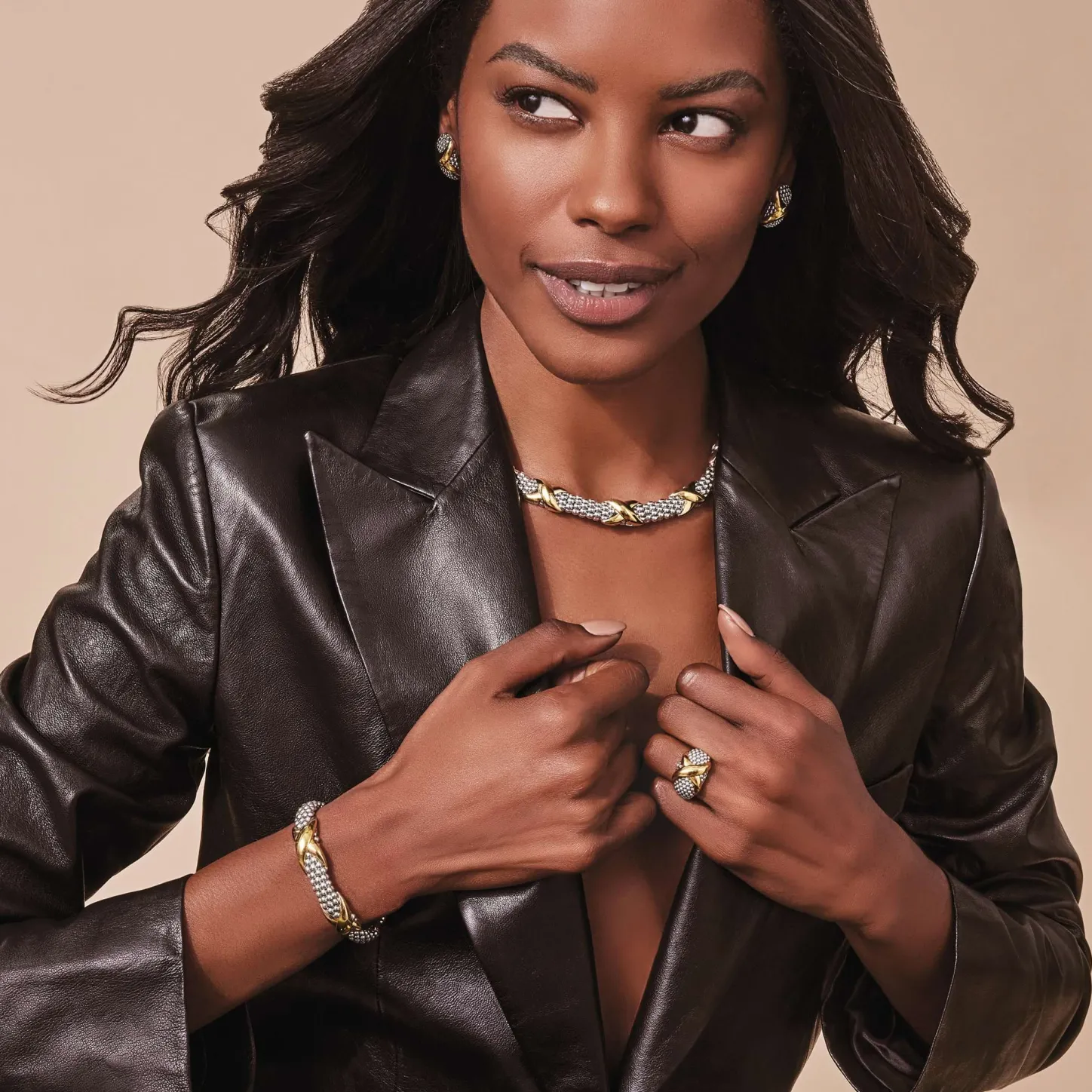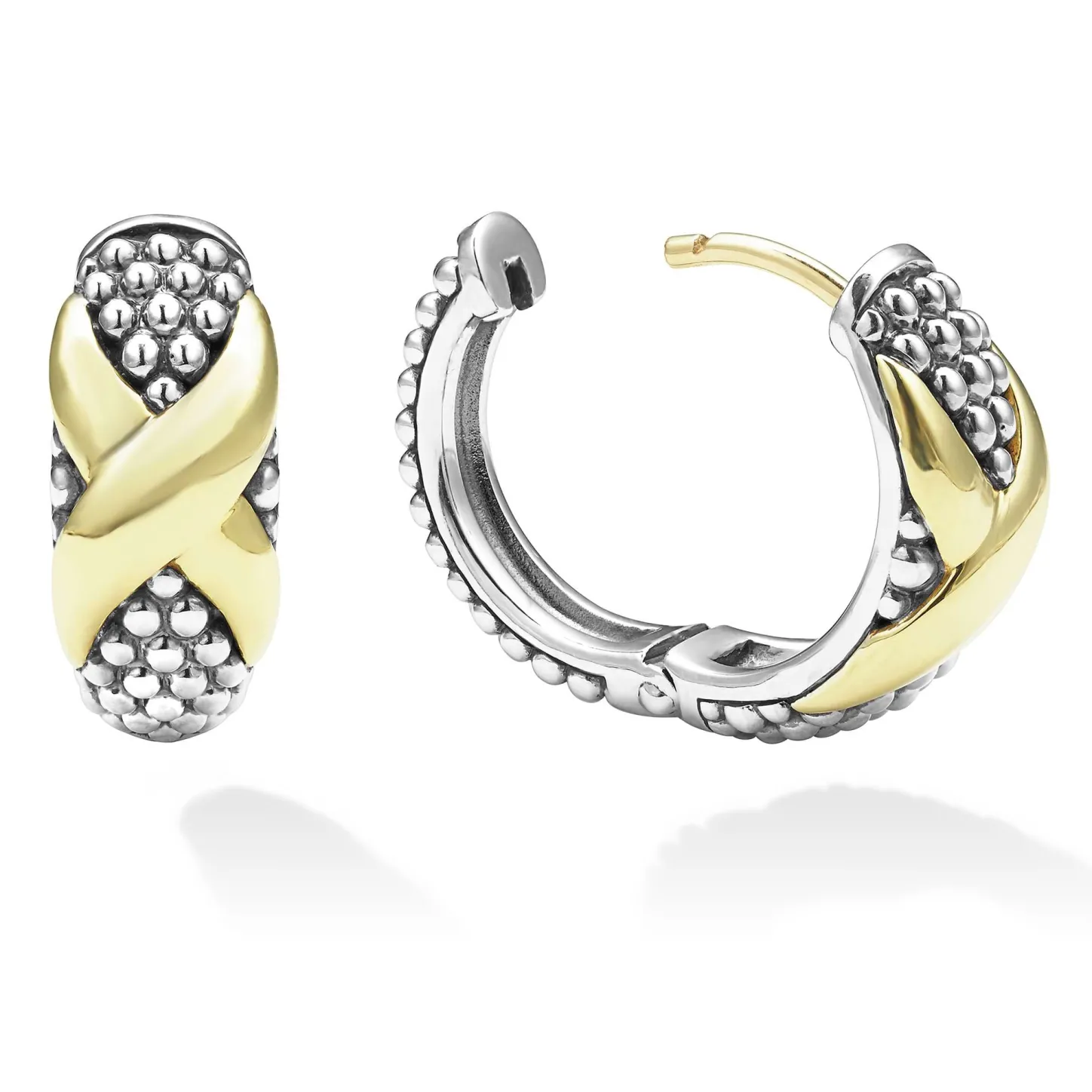 Smooth 18K Gold And Sterling Silver Caviar Beading Form These Huggie Hoop Earrings.