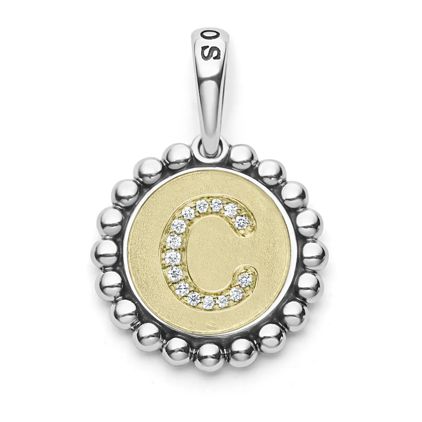 A Lagos Exclusive. Our Signature Caviar Sterling Silver And 18K Gold Initial ‘C’ Charm Accented With Diamonds. Charm Can Only Be Paired With Chains 04-80756-Ml, 04-80549-Ml, 04-80946-Ml Or 04-10534-Ml. Chain Sold Separately. Lagos Diamonds Are The Highest Quality Natural Stones.