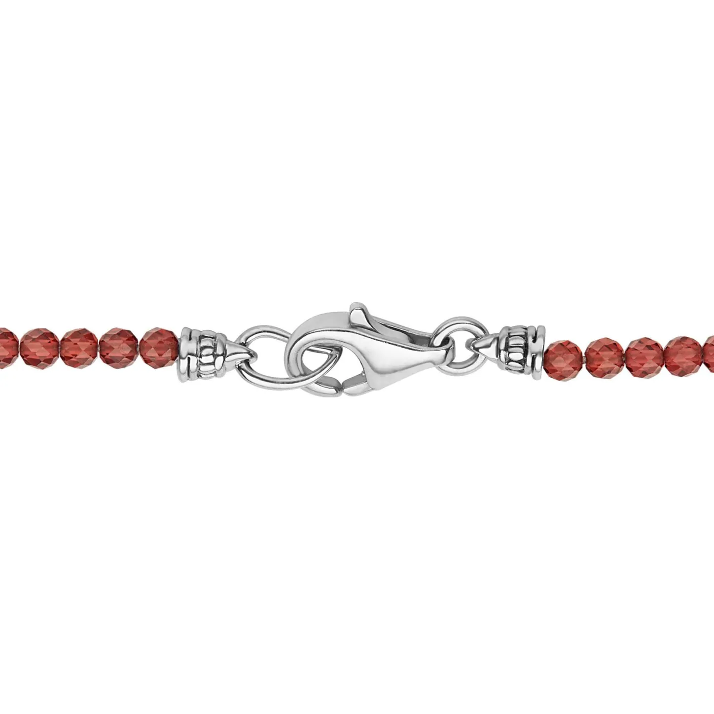 Garnet Gemstone Beaded Necklace With Caviar Beading And Fluted Accents. Gemstones Are Natural With Unique Hues. Variations From The Colors Shown Make Each Necklace Unique.