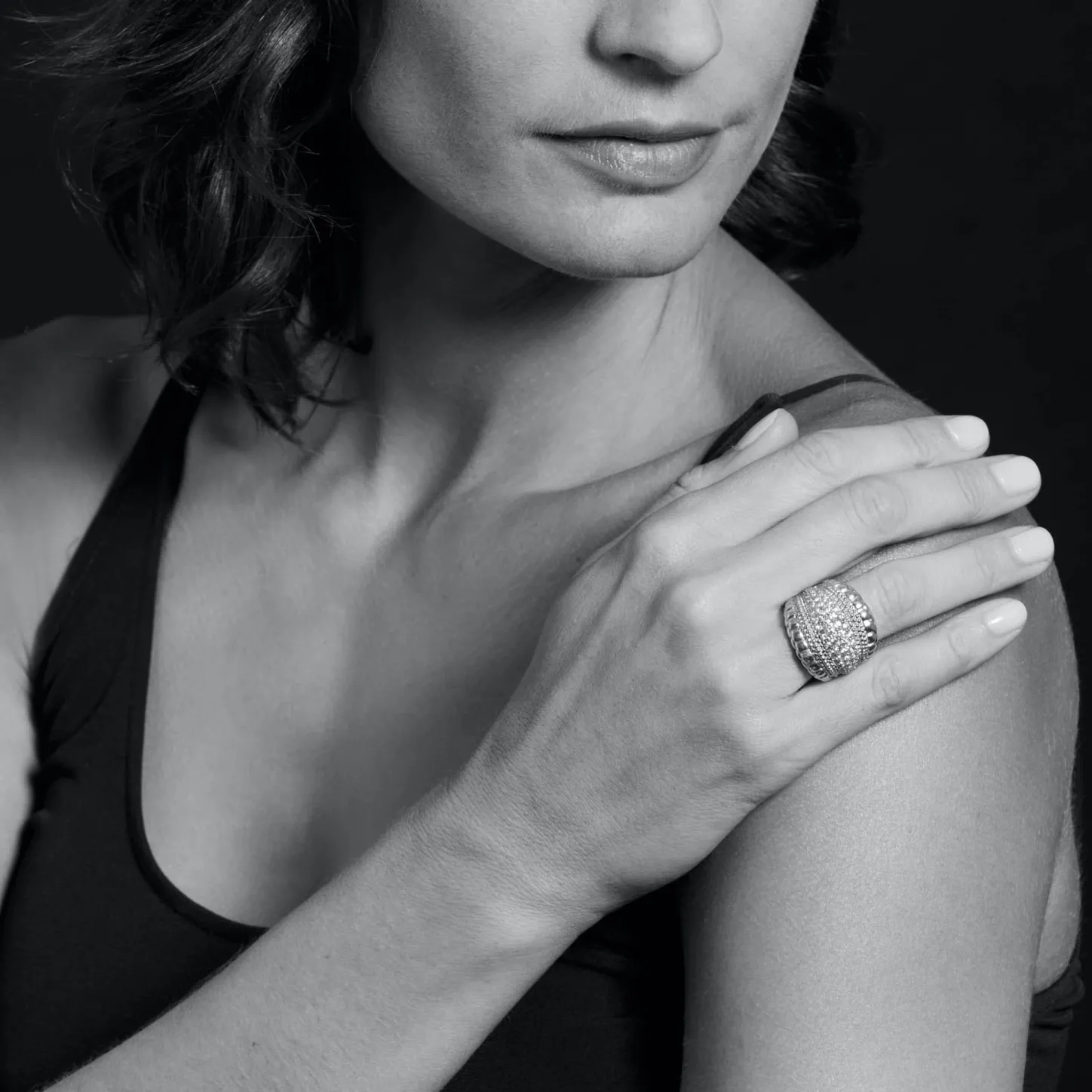 Diamonds And 18K Gold Caviar Beading Form This Statement Ring. Lagos Diamonds Are The Highest Quality Natural Stones.