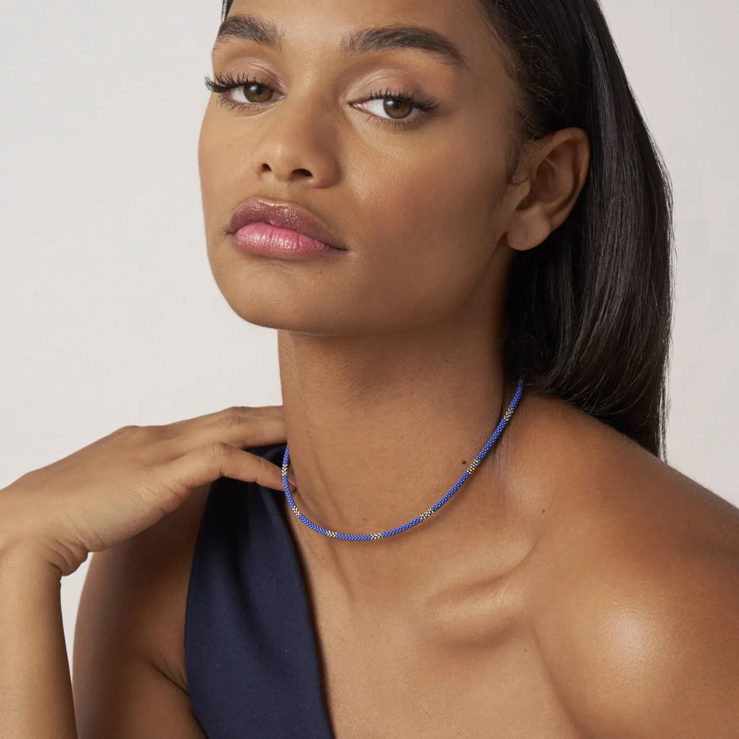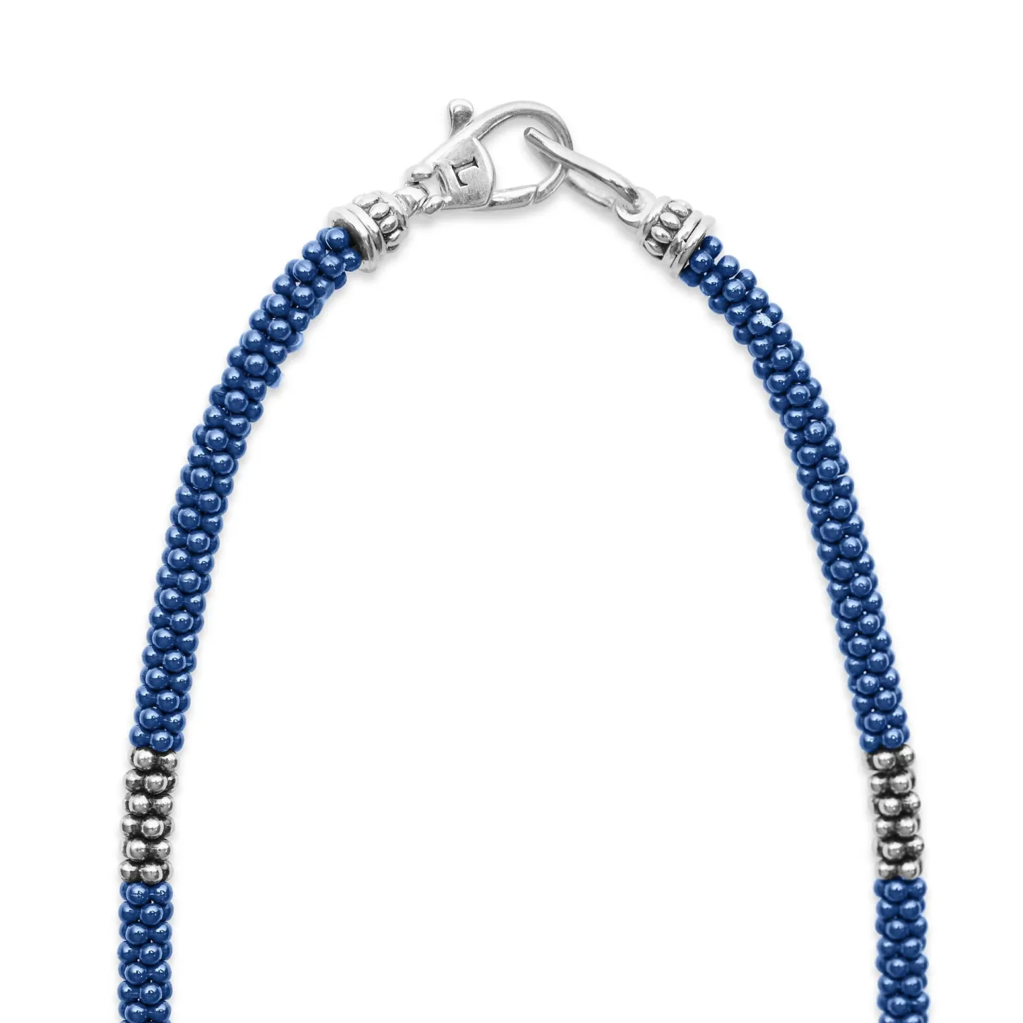 An Ultramarine Ceramic And Sterling Silver Caviar Beaded Necklace That Is Finished With Signature Lobster Clasp.