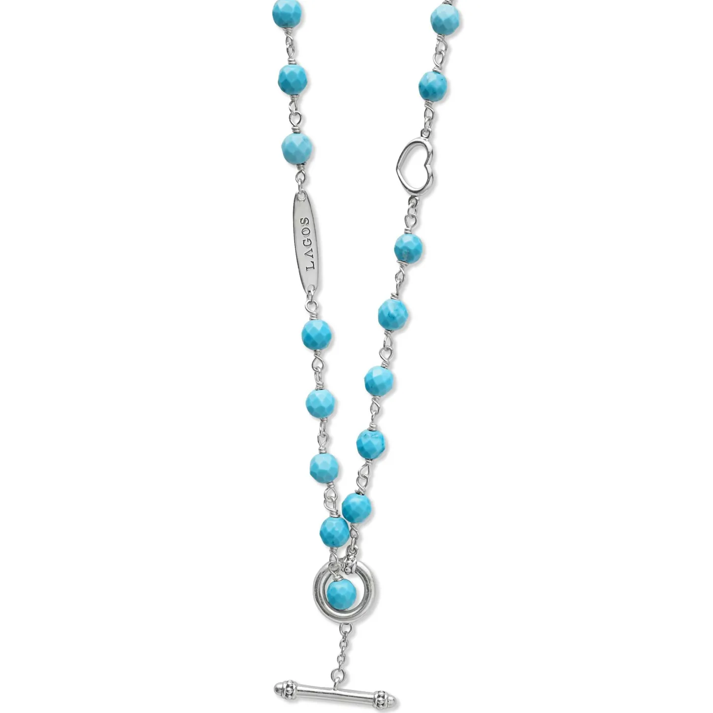 Turquoise And Sterling Silver Caviar Beaded Necklace Finished With A Toggle Clasp. Necklace Adjustable 16 To 18 Inches.