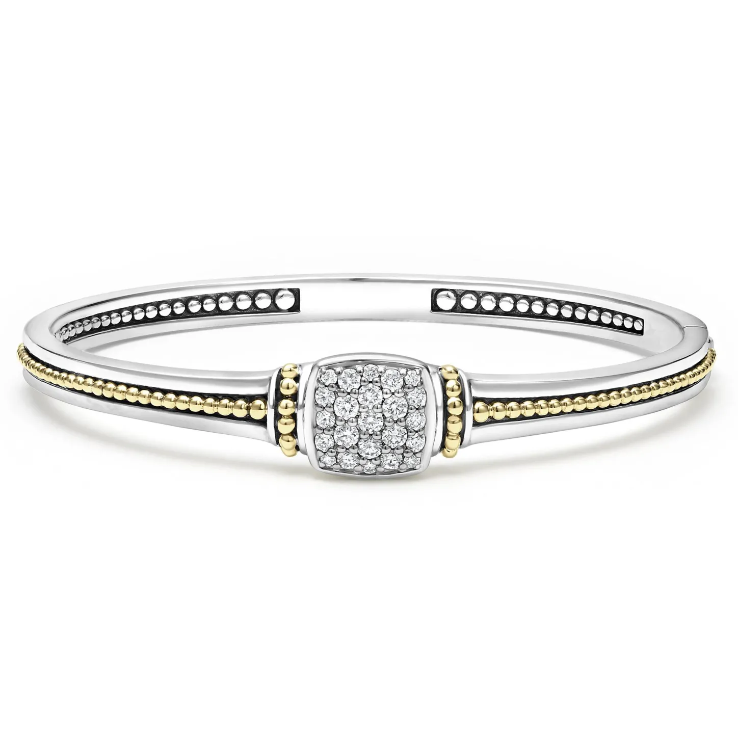 A Lagos Exclusive. Diamonds And 18K Gold Caviar Beading Forms This Unique Cuff Bracelet. Lagos Diamonds Are The Highest Quality Natural Stones.