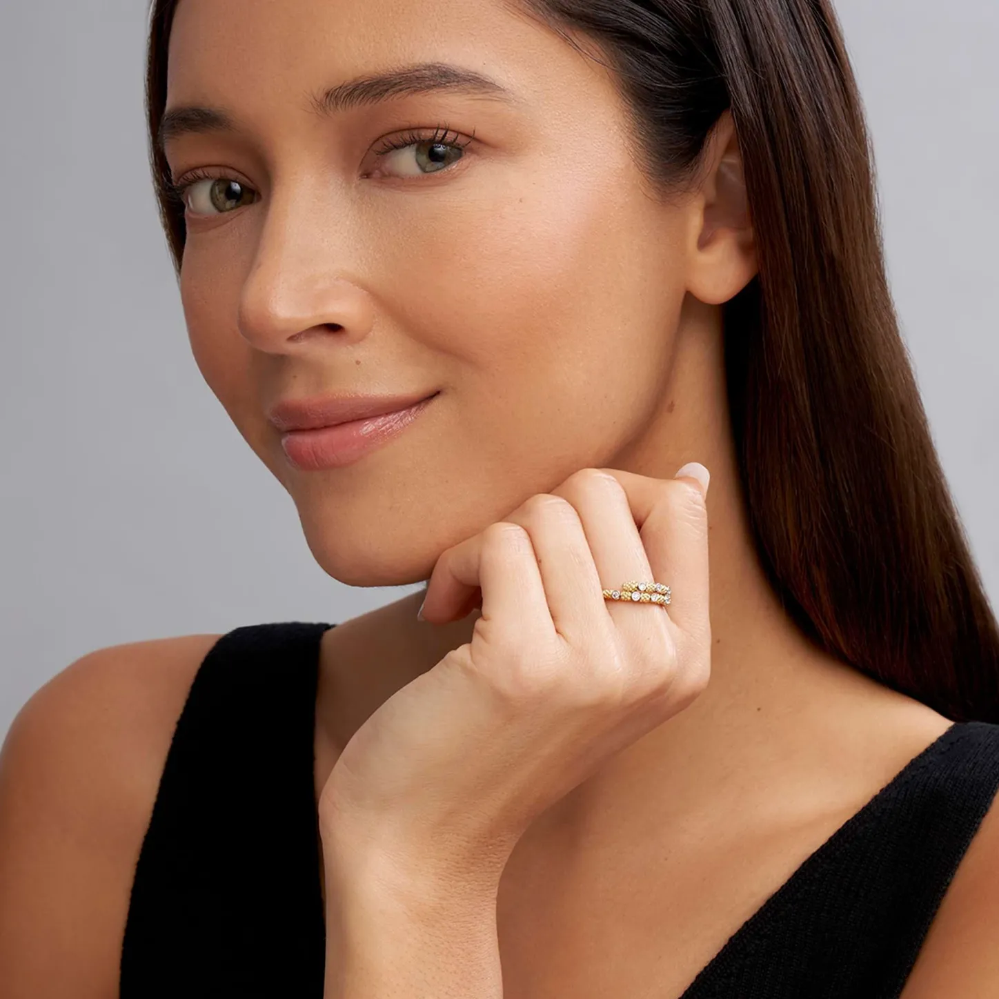 Diamonds Surrounded By 18K Gold Superfine Caviar Beading Form This Delicate Wrap Ring. Lagos Diamonds Are The Highest Quality Natural Stones.