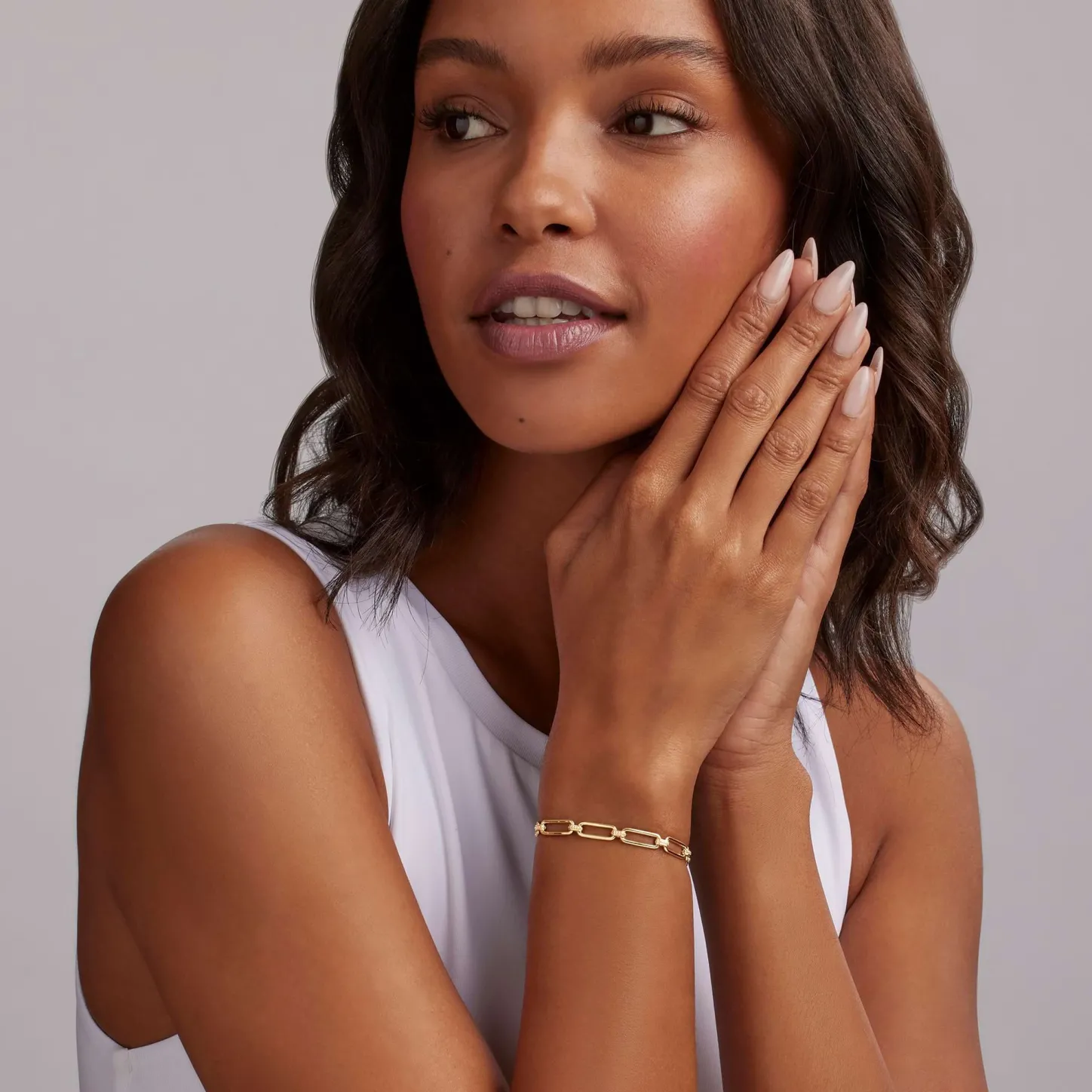 18K Gold Variations Of Caviar Beading & Fluting Elements Form This Bold Link Bracelet.