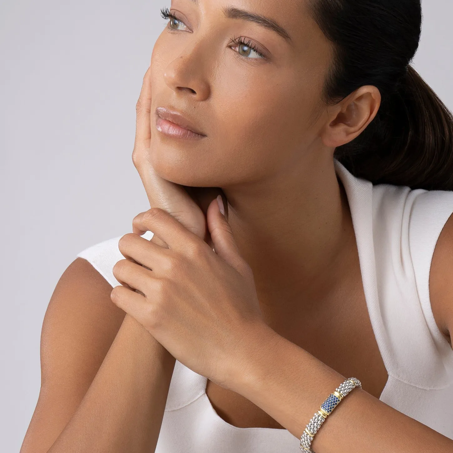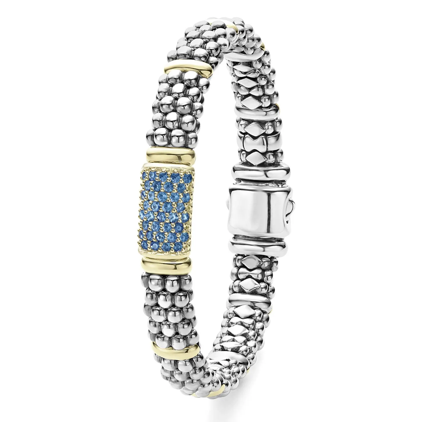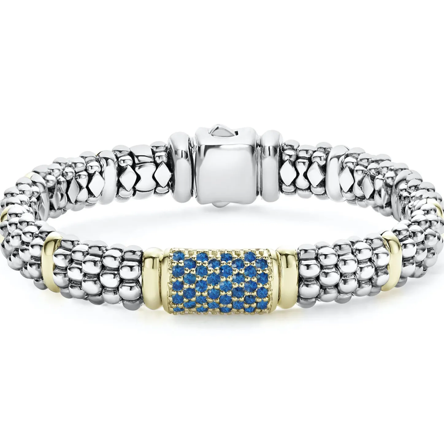 A Lagos Exclusive. Ten 18K Gold Stations Highlight This Sterling Silver Caviar Beaded Bracelet With A Pavé Station Of Blue Sapphire Gemstones.