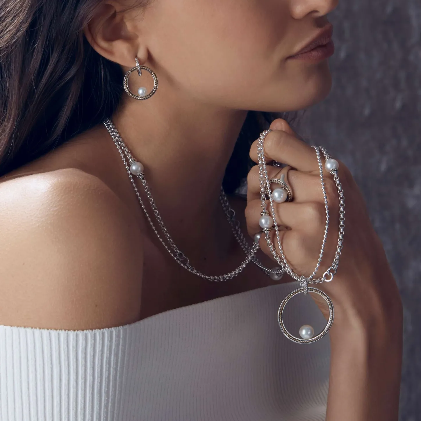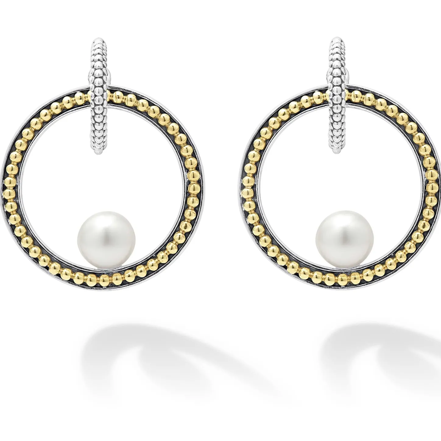 Cultured Freshwater Pearls Are The Highlight Of These Hoop Drop Earrings With Fine Caviar Beading In 18K Gold And Sterling Silver.