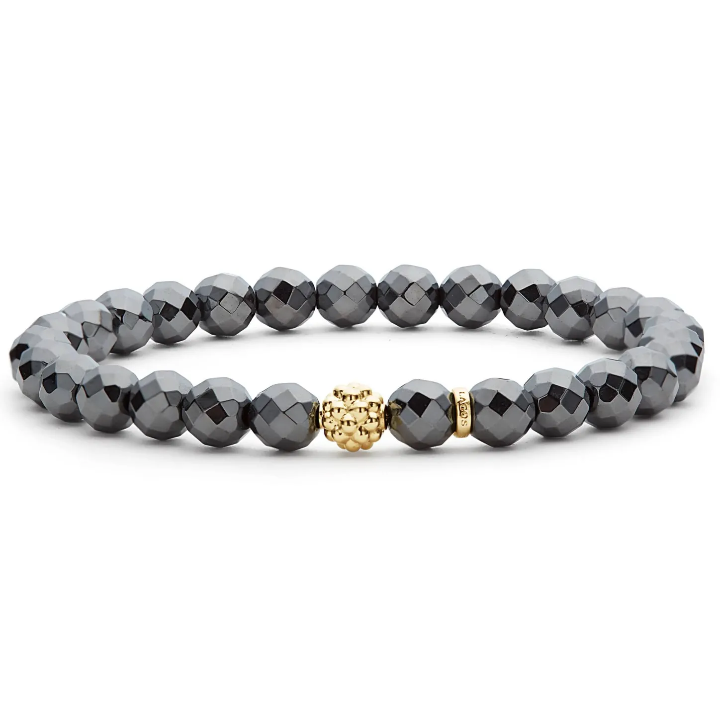 Hematite Gemstone Bracelet With An 18K Gold Caviar Beaded Station That Is Ideal To Style With Various Bracelets For A Unique Look.