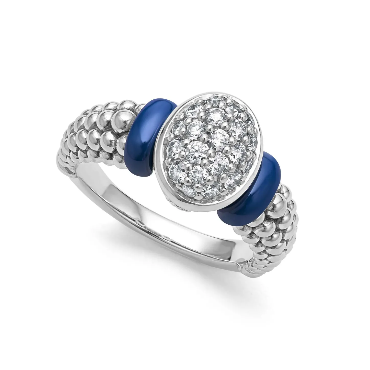 Online Oval Ceramic Caviar Diamond Ring Silver