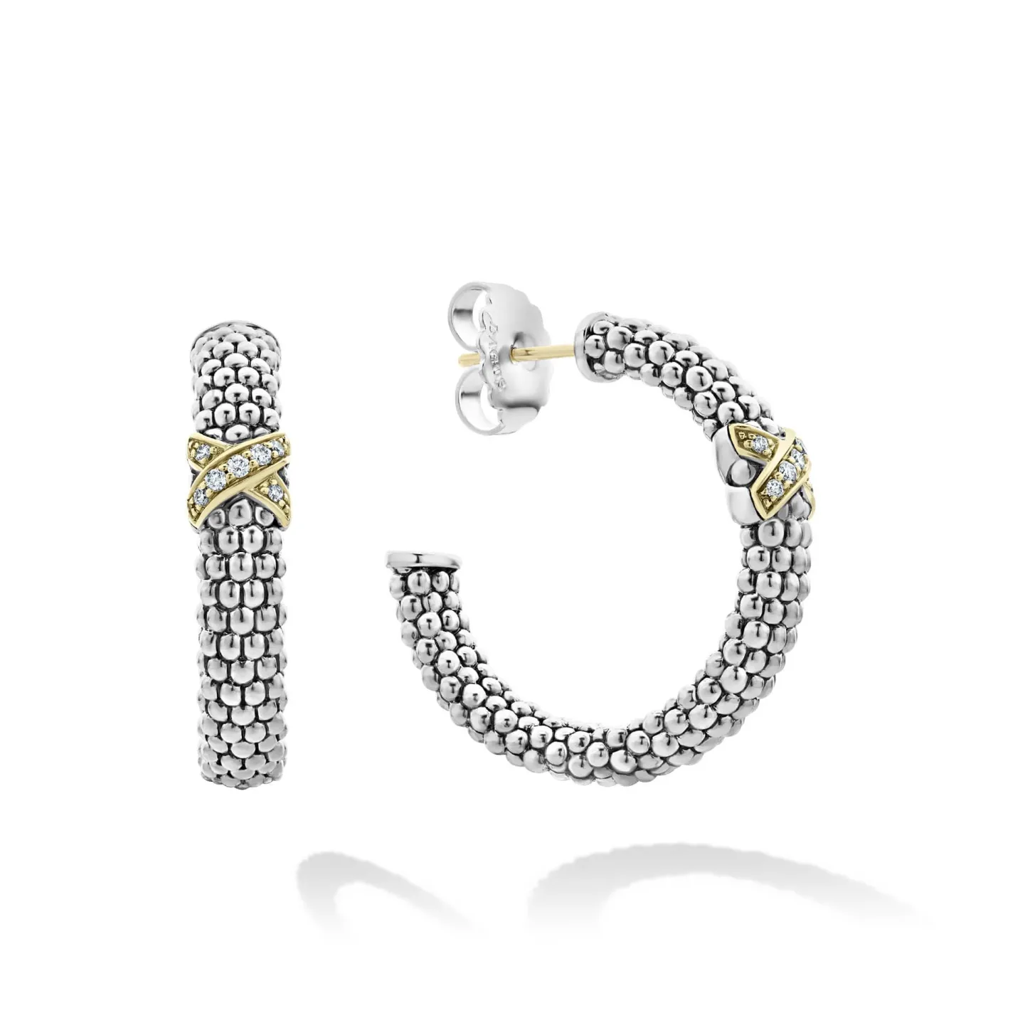 Online Small X Diamond Caviar Hoop Earrings Diamonds
