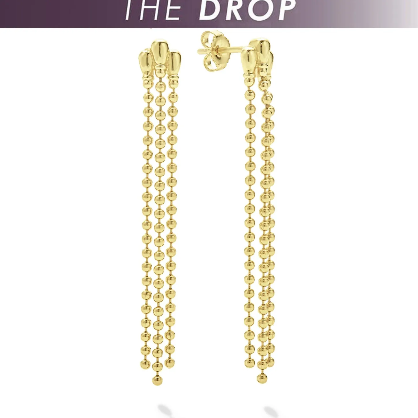 Limited Quantities For A Limited Time! A Lagos Exclusive. Three Strands Of 18K Gold Caviar Beading Form These Drop Earrings.