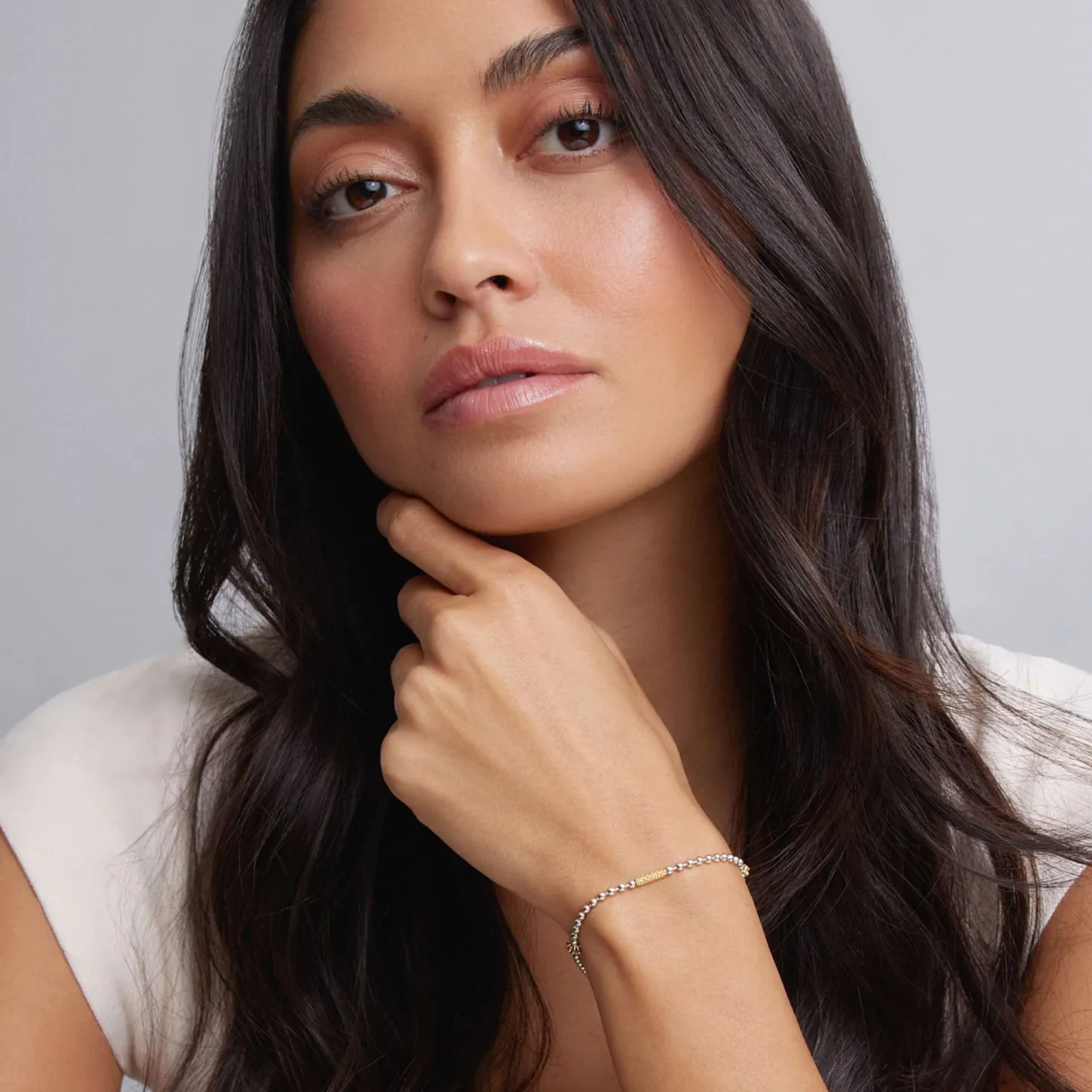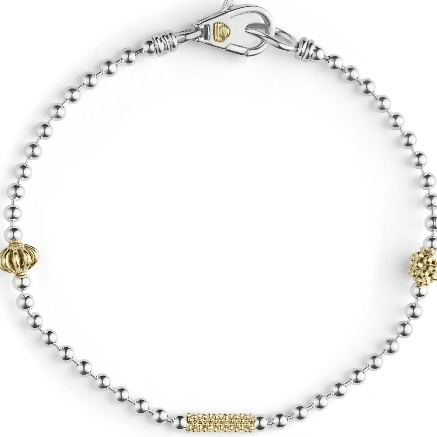 A Sterling Silver Bracelet With 18K Gold Caviar Beading And Fluted Accents.