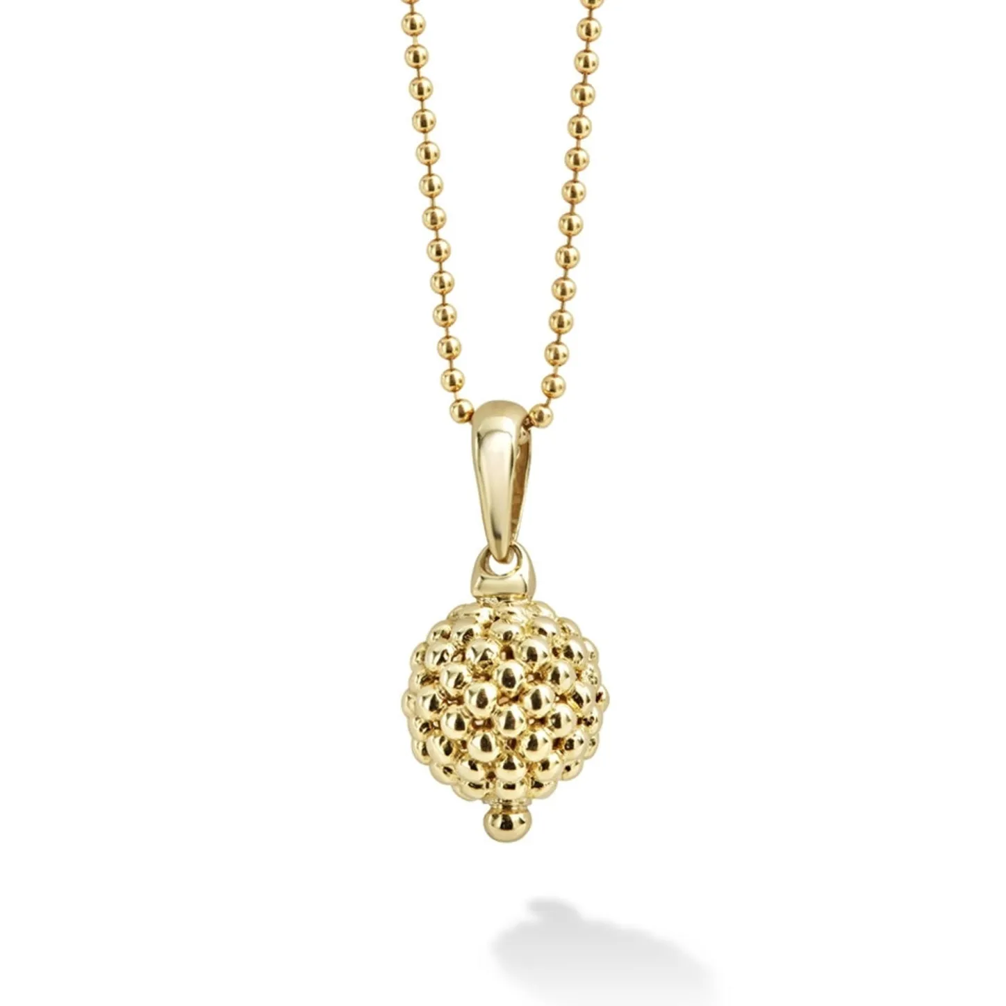 Signature Caviar Beading Surrounds This 18K Gold Pendant Paired With An 18K Gold Ball Chain Necklace.