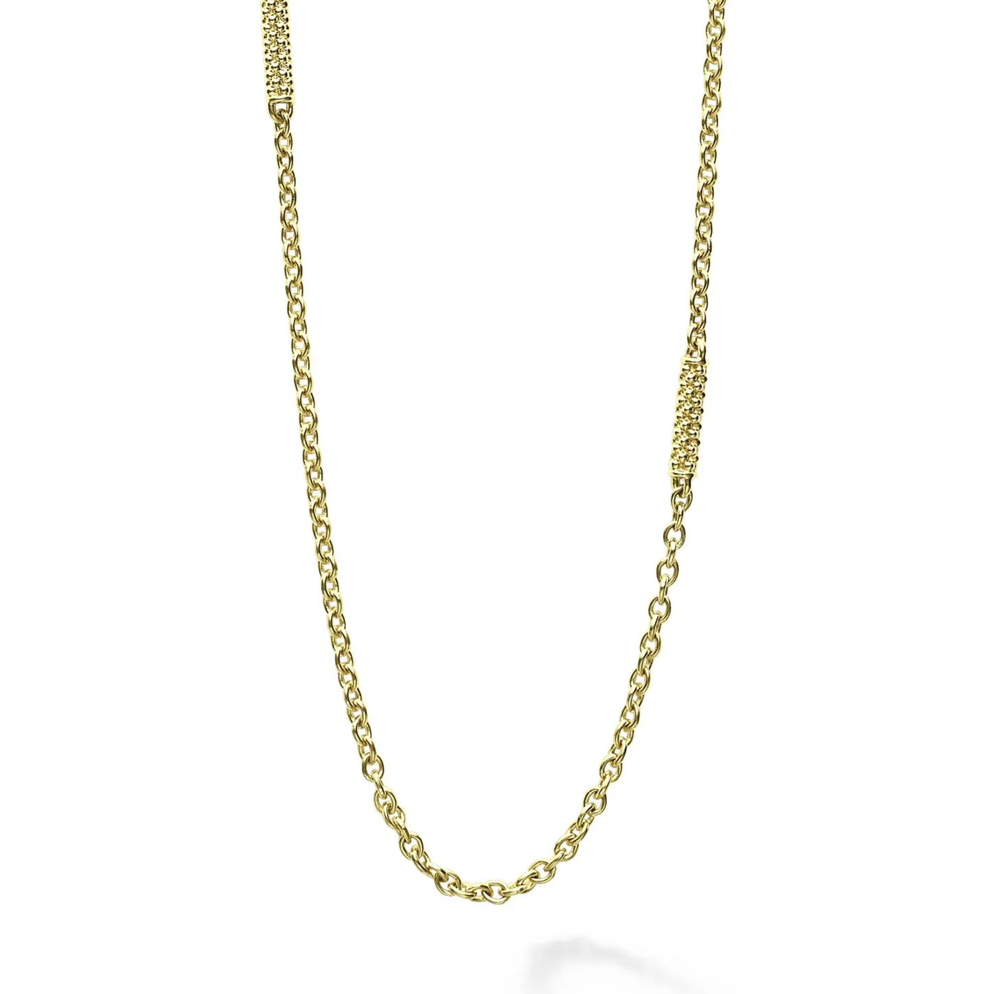 Seven 18K Gold Superfine Caviar Beaded Stations Accent This 32 Inch Chain Necklace.