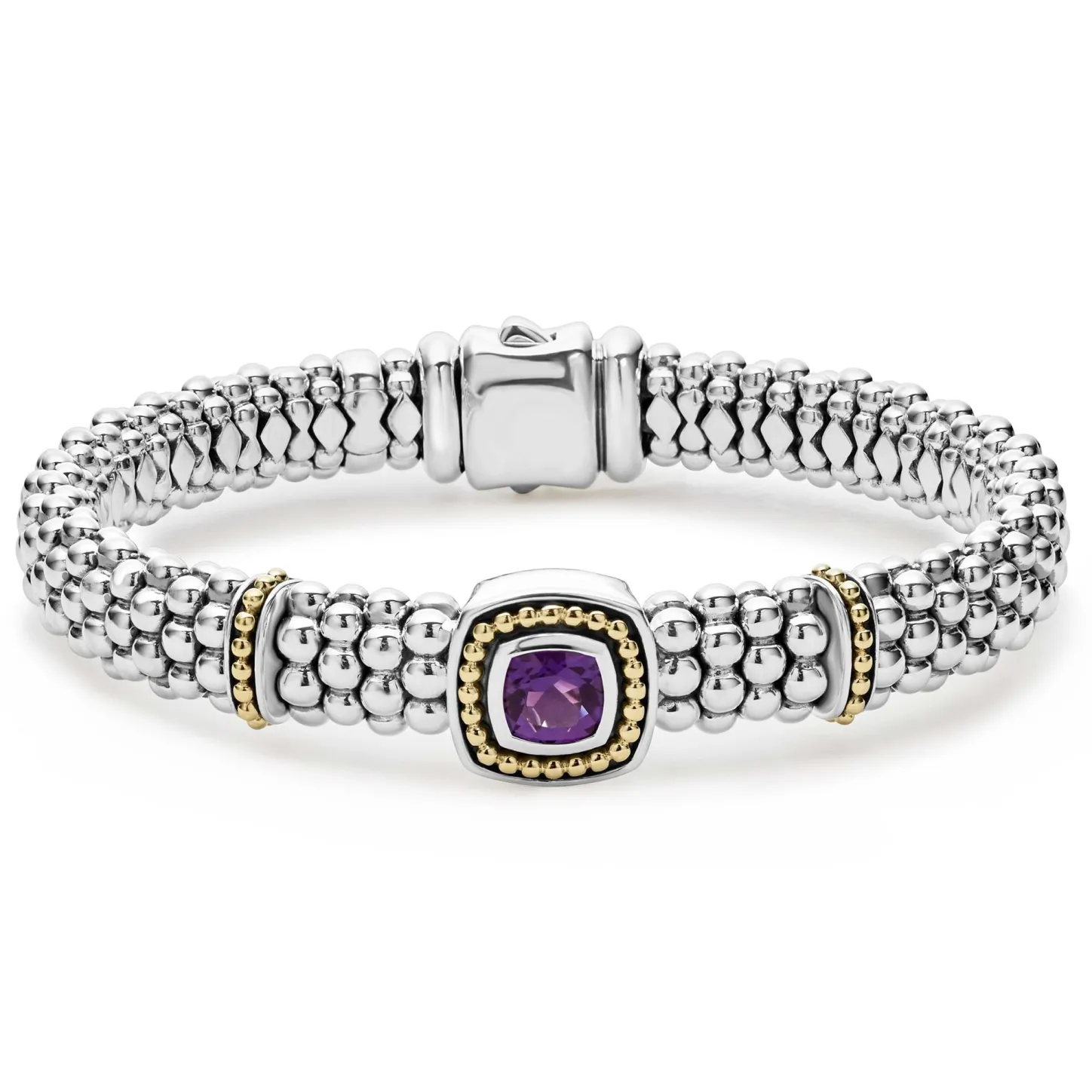 A Lagos Exclusive. An Amethyst Gemstone And Sterling Silver Caviar Beading With 18K Gold Detailing Forms This Bracelet.