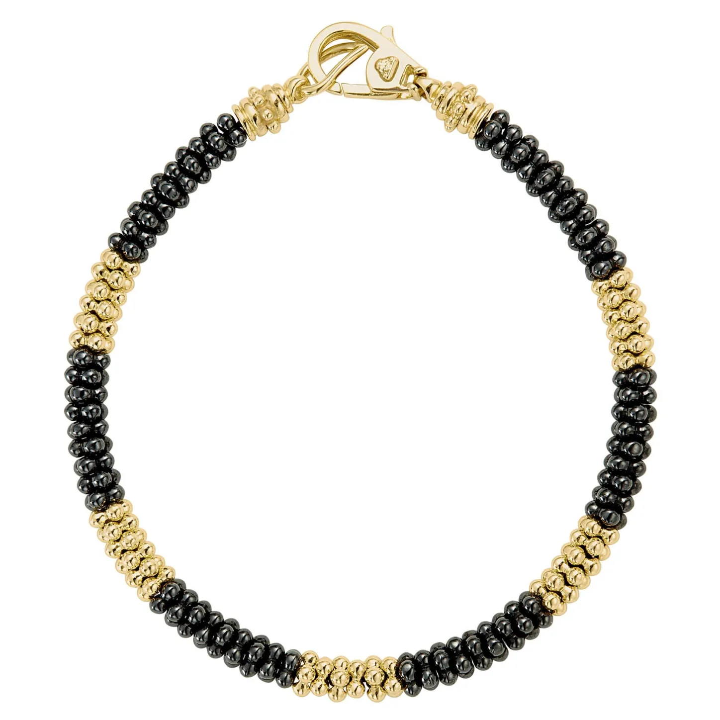 Five Large Gold Bead Stations Highlighted By Black Ceramic Caviar Beading Form This Signature Bracelet