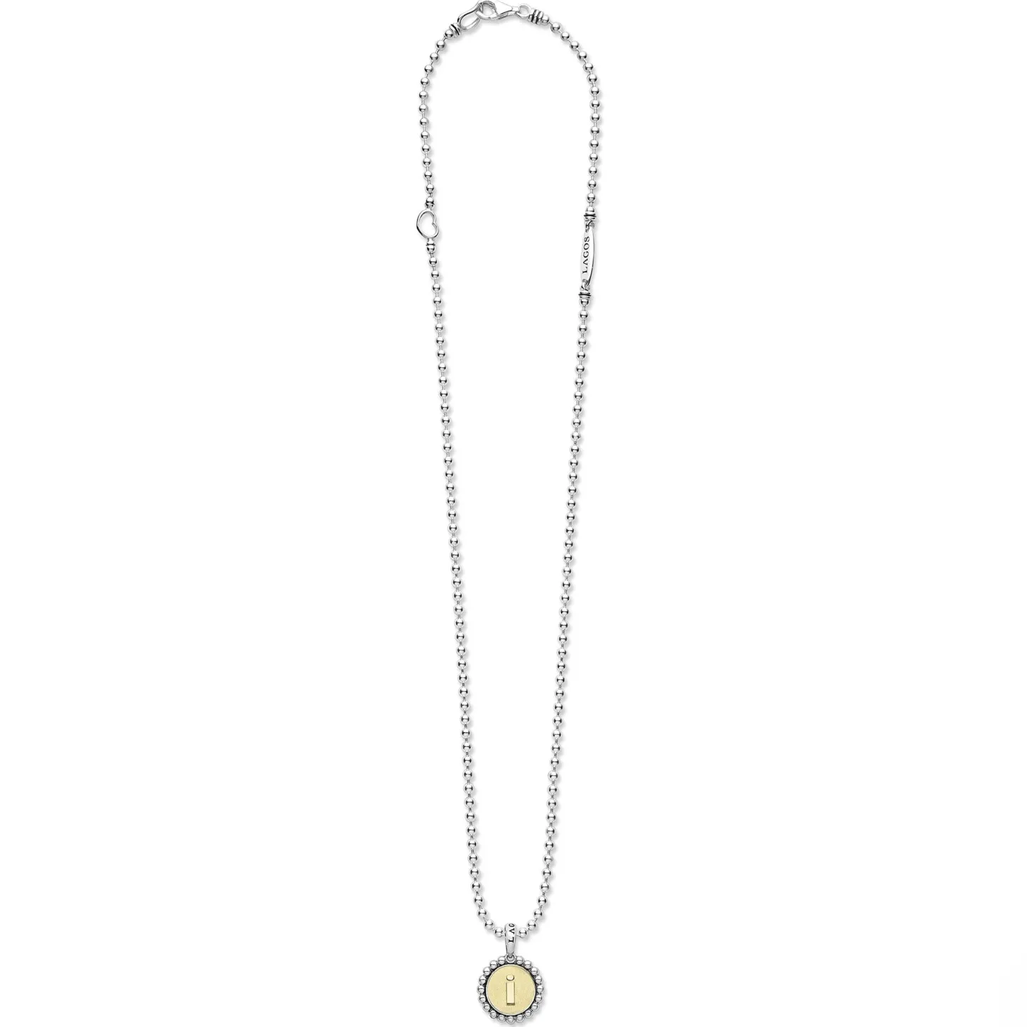Our Signature Caviar Sterling Silver And 18K Gold Initial ‘I’ Charm Finished On A Sterling Silver Ball Chain Necklace.