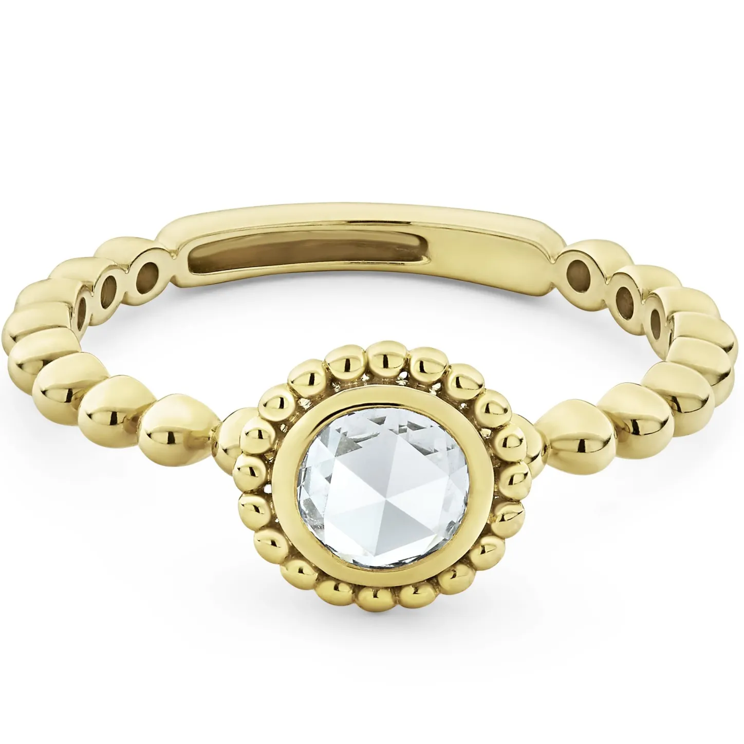 Rose Cut Diamond Stacking Ring Set And Surrounded By 18K Gold Caviar Beading. Lagos Diamonds Are The Highest Quality Natural Stones.