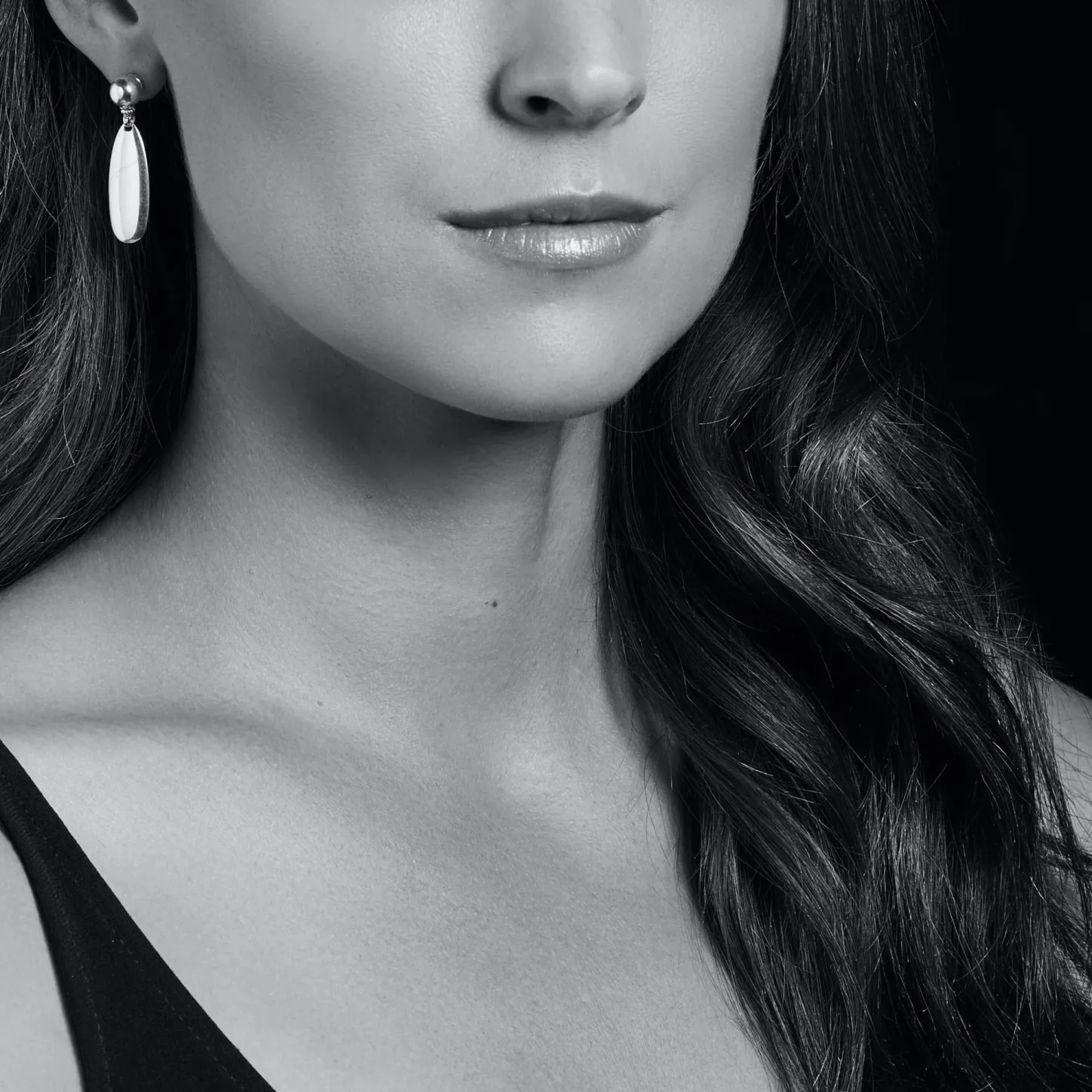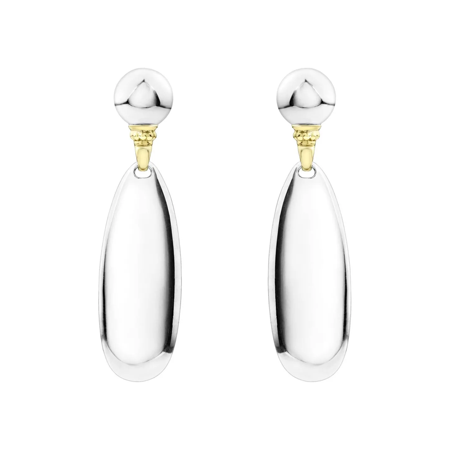 Highly Polished Sterling Silver Drop Earrings With 18K Gold Caviar Accents.