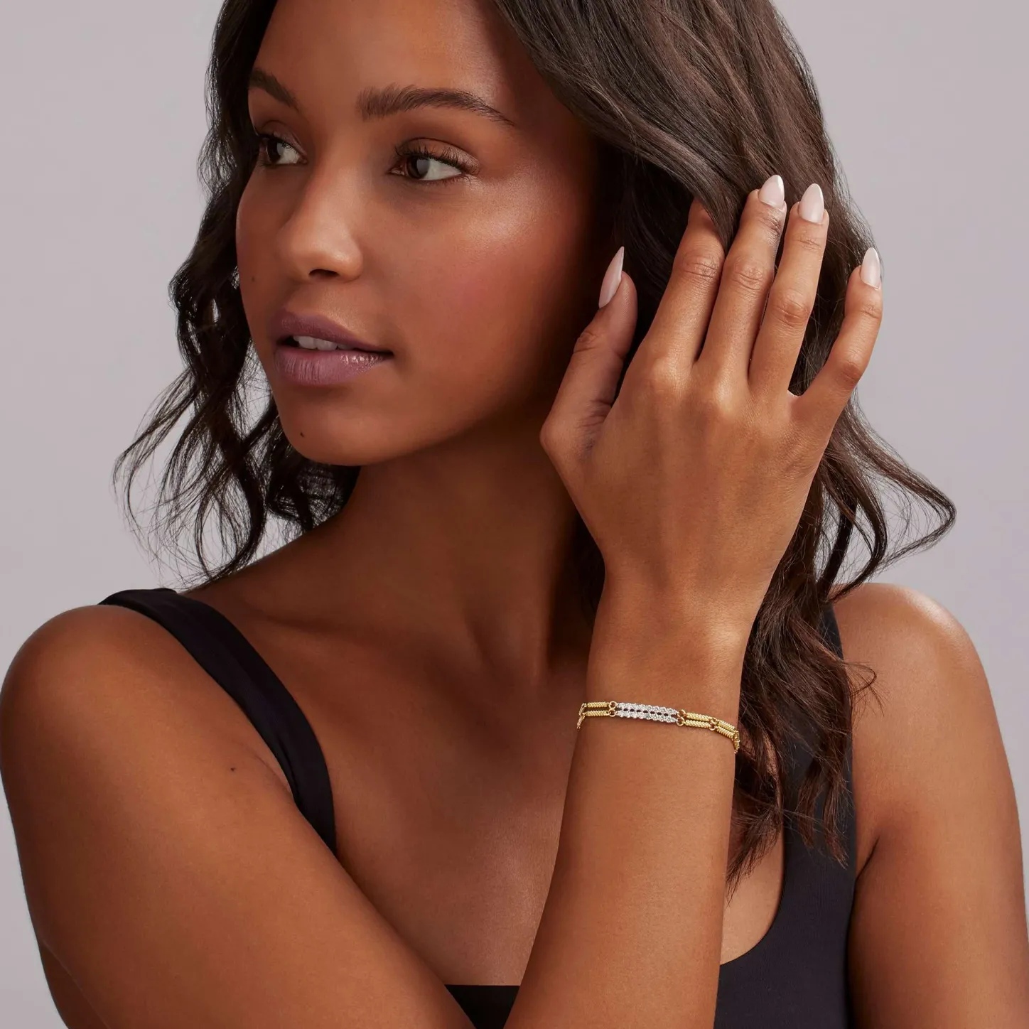 18K Gold Superfine Caviar Beading And Diamonds Form This Double Link Bracelet. Lagos Diamonds Are The Highest Quality Natural Stones.