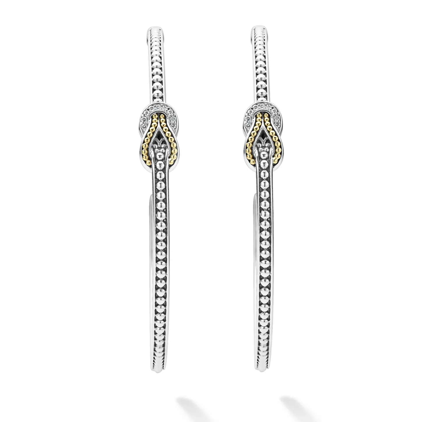 Diamonds And 18K Gold Woven In A Knot Motif Form These Unique Newport Caviar Beaded Hoop Earrings. Lagos Diamonds Are The Highest Quality Natural Stones.