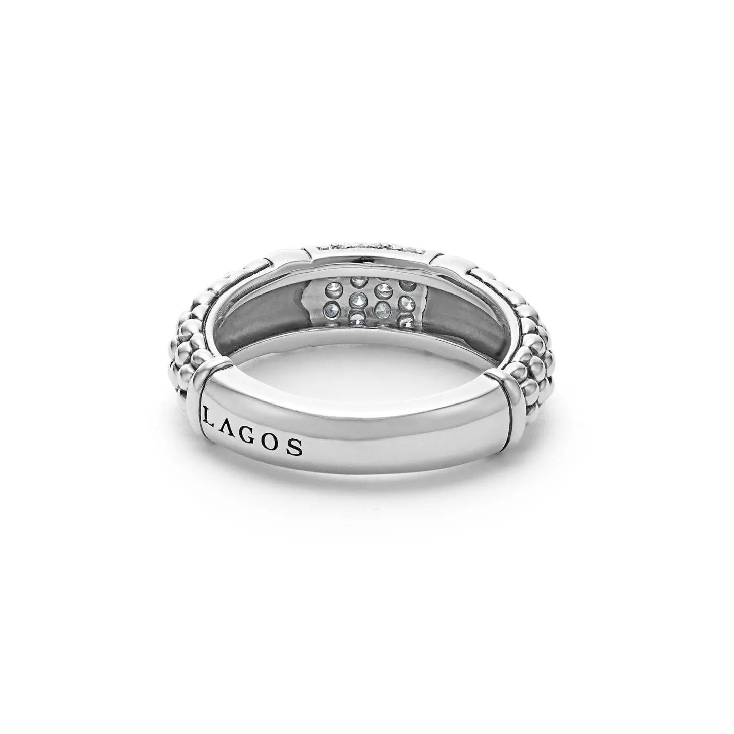 Pavé Diamonds And Sterling Silver Caviar Beading Form This Unique Band Ring. Lagos Diamonds Are The Highest Quality Natural Stones.